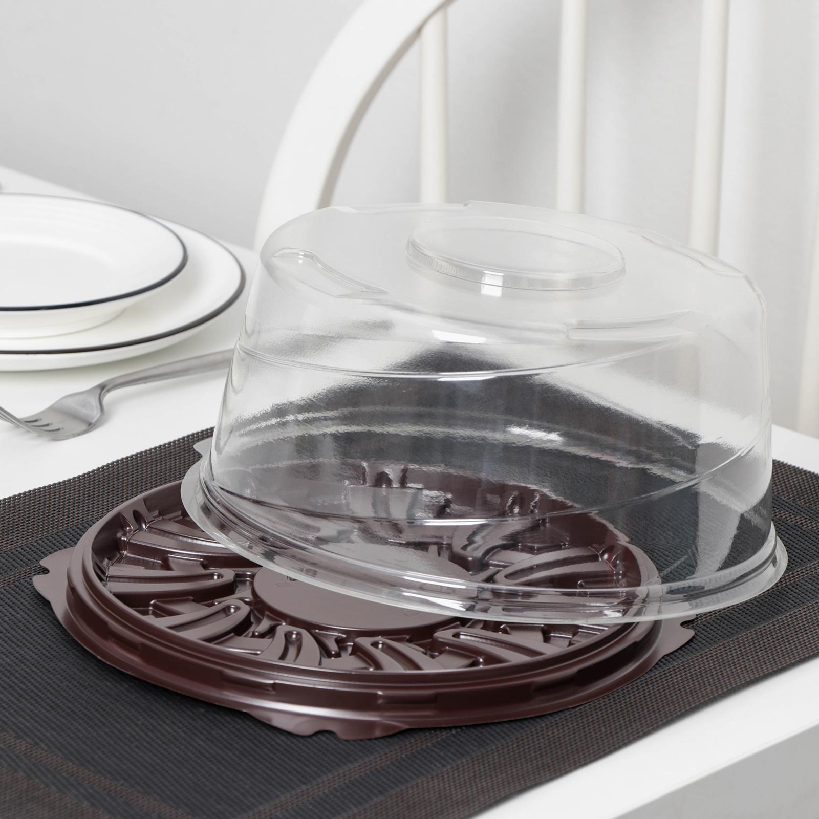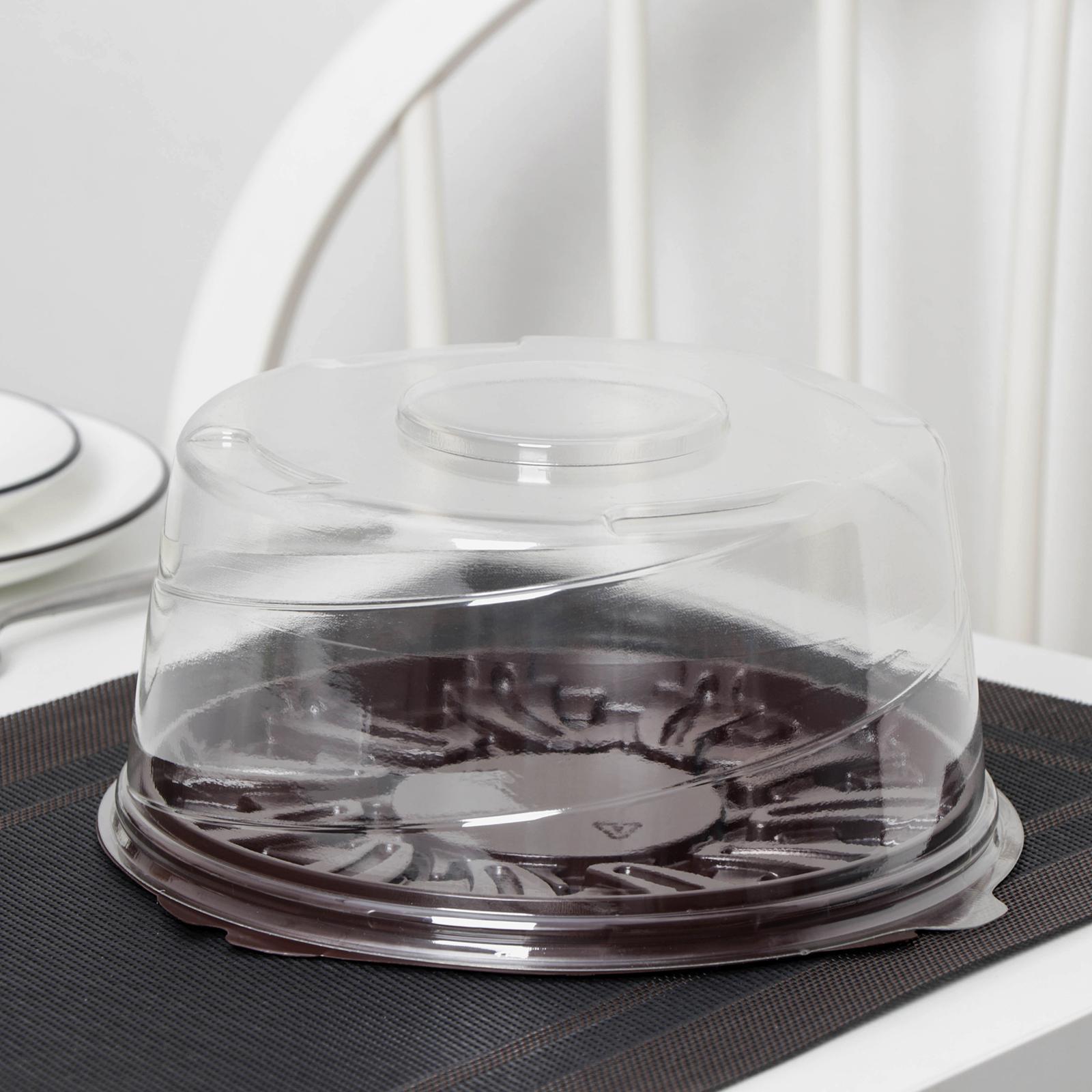 Тортовница пластиковая одноразовая с крышкой ут-77, 22,5x10,7 см, внутренний 19x9,3 см, цвет прозрачный, коричневый