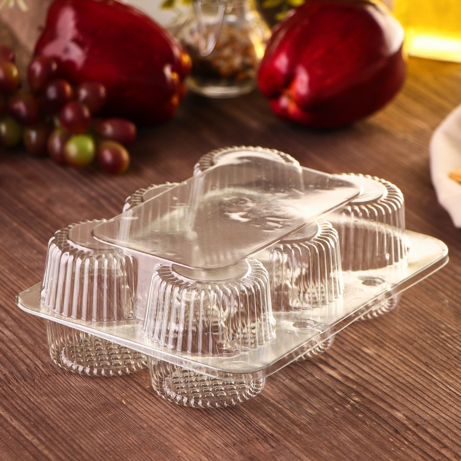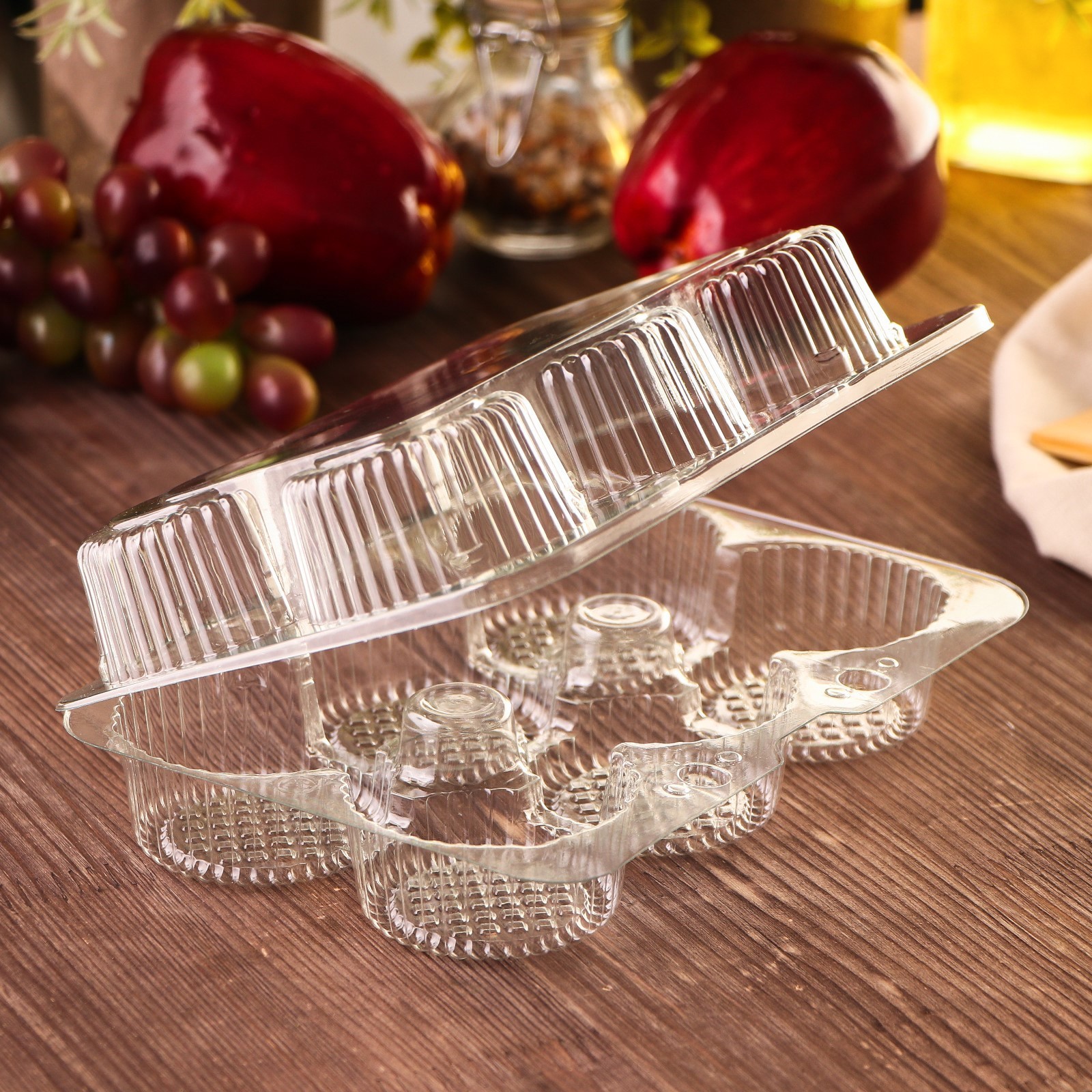 Контейнер пластиковый одноразовый с неразъёмной крышкой ут-52, 19,4x14x6,5 см, внутренний. 5x6,1 см, 6 ячеек, цвет прозрачный