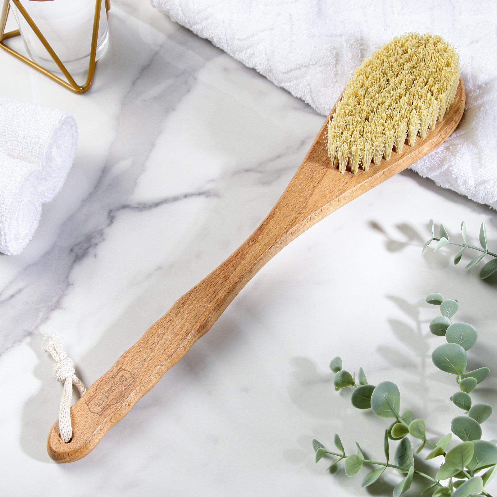 Щетка массажная с длинной ручкой, тампико "добропаровъ" 38,5см х 8см х 4,5см. Массажная щетка для тела, изготовленная из натуральной щетины и лотосового дерева, представляет собой идеальное средство для эффективной борьбы с целлюлитом. Натуральная щетина обеспечивает глубокий массаж и деликатное отшелушивание, стимулируя кровообращение и улучшая обмен веществ в проблемных зонах. Основа из лотосового дерева удобна и эргономична, что позволяет легко и комфортно использовать щетку. Регулярное применение этой щетки способствует разглаживанию кожи, повышению ее упругости и устранению признаков целлюлита. Преимущества: Эффективный массаж: Натуральная щетина глубоко проникает в кожу, обеспечивая интенсивный массаж, который стимулирует кровообращение и лимфодренаж, способствуя расщеплению жировых отложений. Деликатное отшелушивание: Щетка нежно удаляет ороговевшие клетки, очищая поры и обновляя кожу. Результат — бархатистая и сияющая кожа без следов сухости и шелушения. Улучшение кожи: Регулярное использование щетки способствует выравниванию поверхности кожи, повышению её упругости и устранению «апельсиновой корки». Естественные материалы: Натуральная щетина и экологически чистые материалы гарантируют безопасность и гипоаллергенность, подходя для всех типов кожи. Эргономичный дизайн: Удобная ручка обеспечивает комфортное использование и легкость в управлении, позволяя достичь даже труднодоступных участков тела. Применение: Подготовка кожи: Перед использованием щетки убедитесь, что кожа чистая и сухая. Массаж: Начните массаж с ног, плавно поднимаясь вверх по направлению к сердцу. Используйте круговые и длинные движения, уделяя особое внимание проблемным зонам. Интенсивность: Регулируйте давление в зависимости от чувствительности кожи. Для максимального эффекта используйте щетку ежедневно по 5-10 минут. После процедуры: После массажа рекомендуется принять душ и нанести увлажняющий крем или антицеллюлитное средство для закрепления результата. Уход за щеткой: Промывайте щетку теплой водой с мылом после каждого использования и оставляйте сушиться в хорошо проветриваемом месте. С антицеллюлитной массажной щеткой для тела из натуральной щетины вы сможете наслаждаться гладкой и упругой кожей каждый день, превращая уход за телом в истинное удовольствие. Цвет: Бежевый Длина ручки, см: 26 Вид дерева: Бук Возраст: Любой Материал: Натуральная щетина Материал: Дерево Область применения: Для живота Область применения: Для ног Область применения: Для рук Область применения: Для бедер Область применения: Для ягодиц Тип массажёра: Массажная щётка Материал основания: Дерево Температурное ограничение: Нет Материал щетины: Тампико  развернуть описание ▼