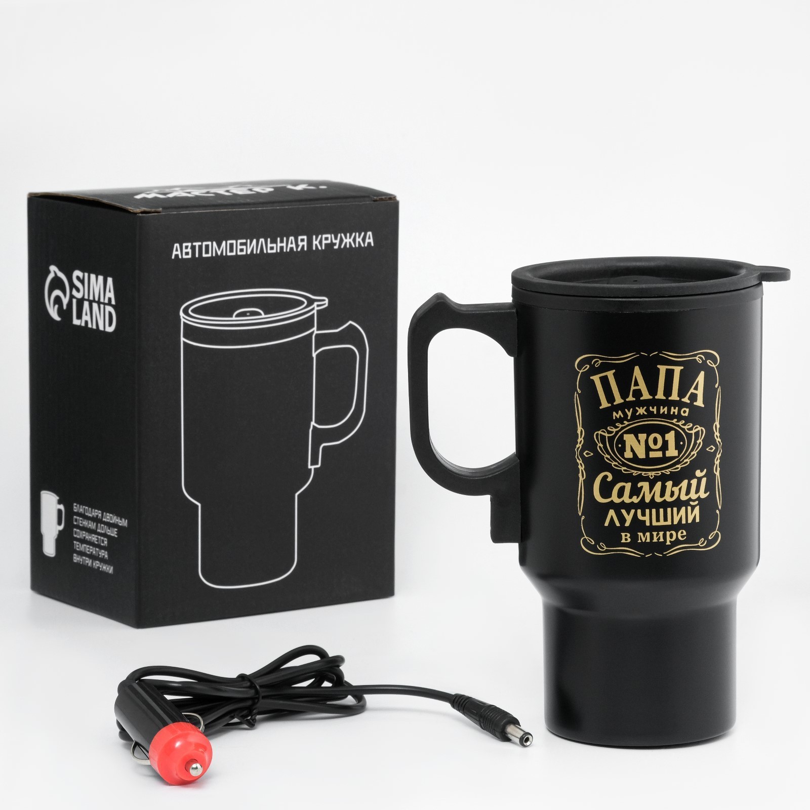 Термокружка, 450 мл, автомобильная"папа - мужчина №1", сохраняет тепло 4 ч, 12 х 17 см