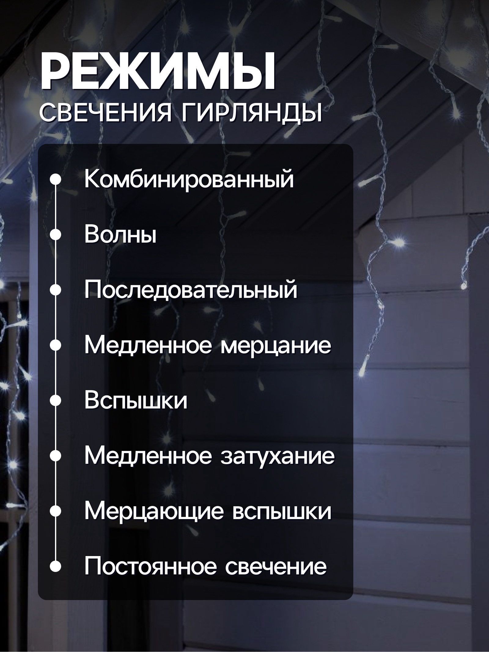 Гирлянда «бахрома» 4 0.6 м, Ip44, прозрачная нить, 180 Led, свечение белое, 8 режимов, 220 в
