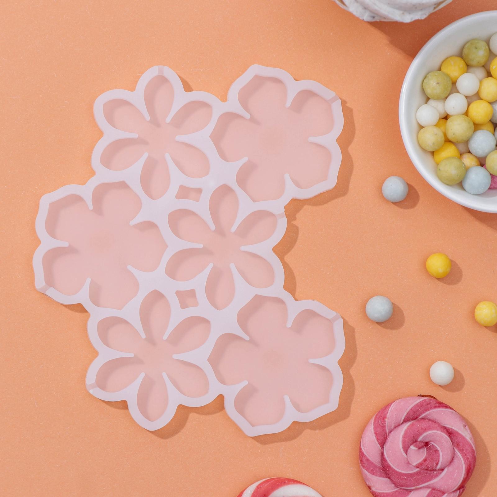 Форма для леденцов «цветочки», силикон, 14x12x0,7 см, 6 ячеек, цвет белый