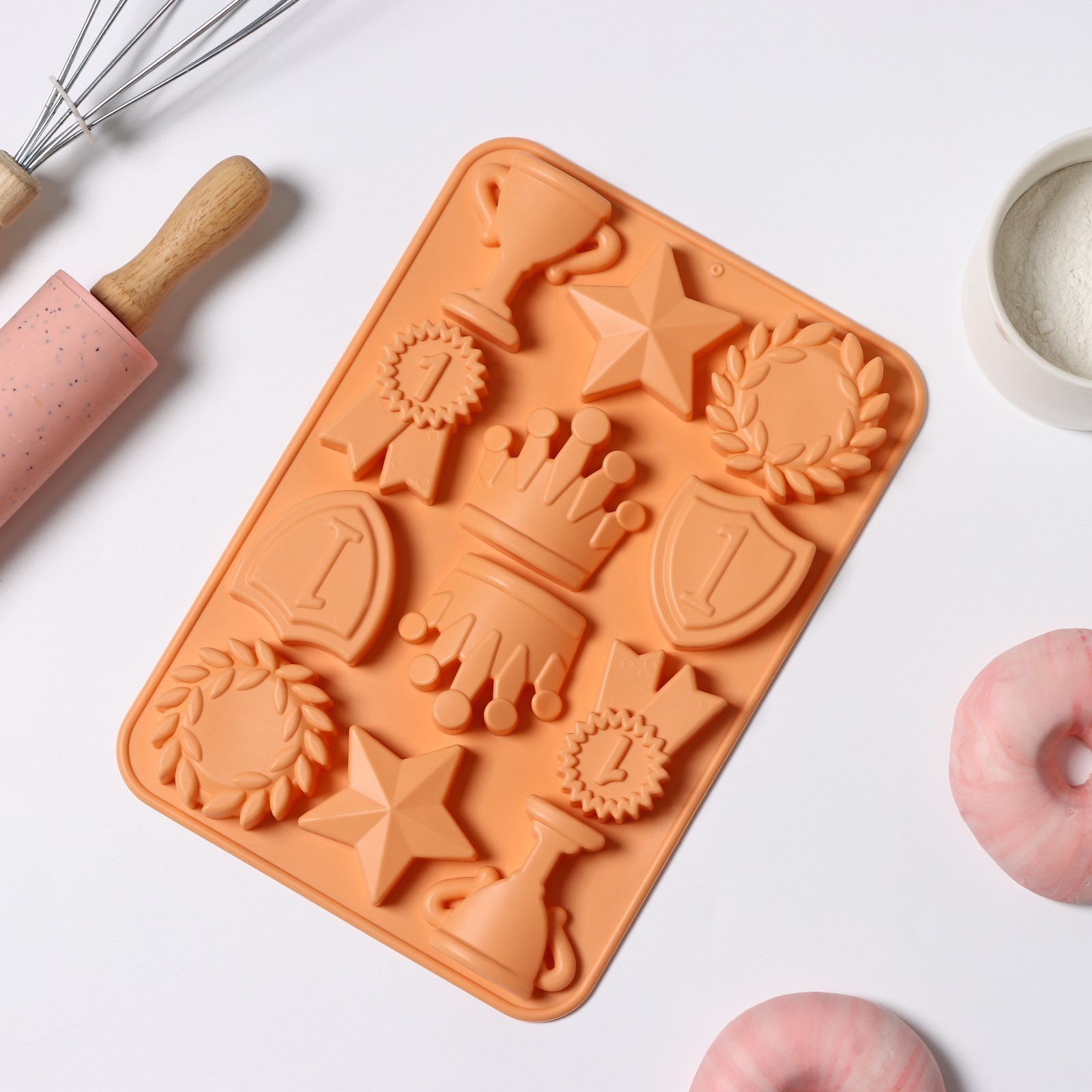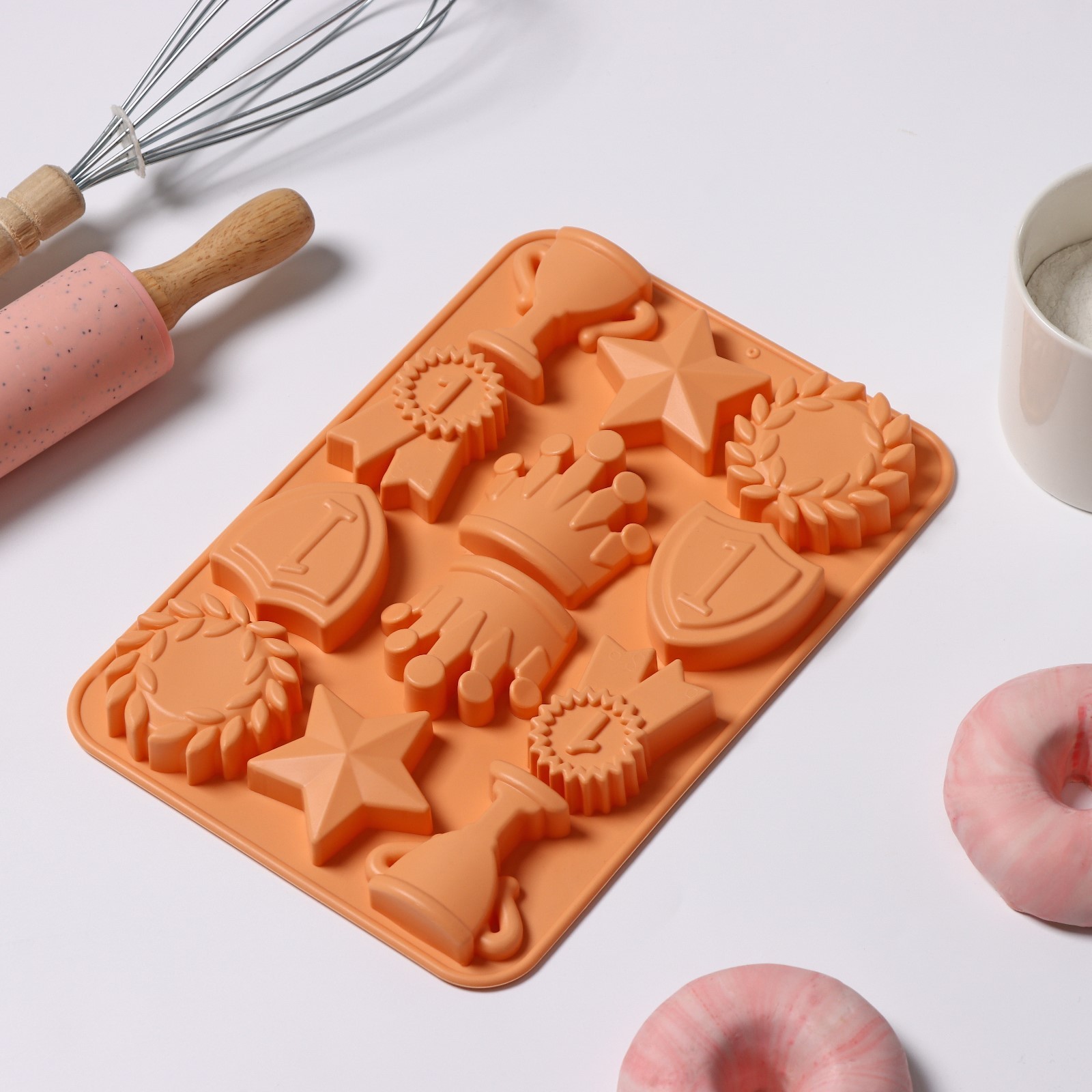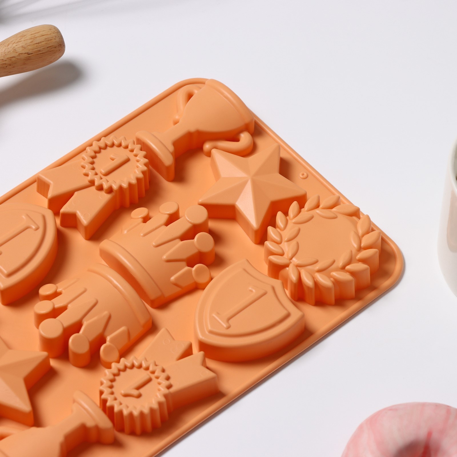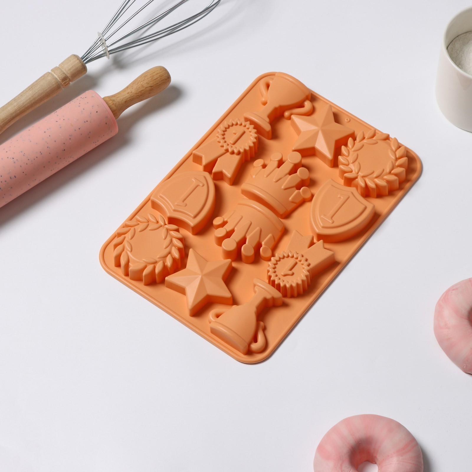 Форма силиконовая для выпечки доляна «чемпион», 12 ячеек, 24x16x2 см, цвет оранжевый. Цвет: Оранжевый Форма: Фигурная Фасовка, шт.: 1 Количество ячеек: 12 Крышка: Нет Материал: Силикон Тип покрытия: Без покрытия Ячейки: Да Наличие палочек для форм: Нет Тип формы: Для печенья и пирожных Разъёмная форма: Нет Съёмное дно: Нет Можно мыть в посудомоечной машине: Да  развернуть описание ▼