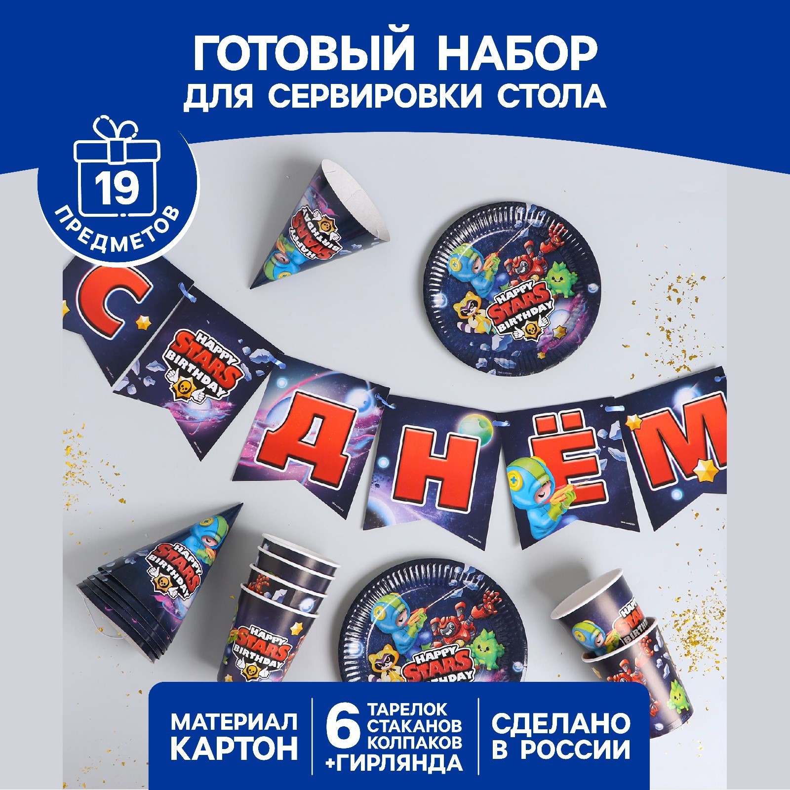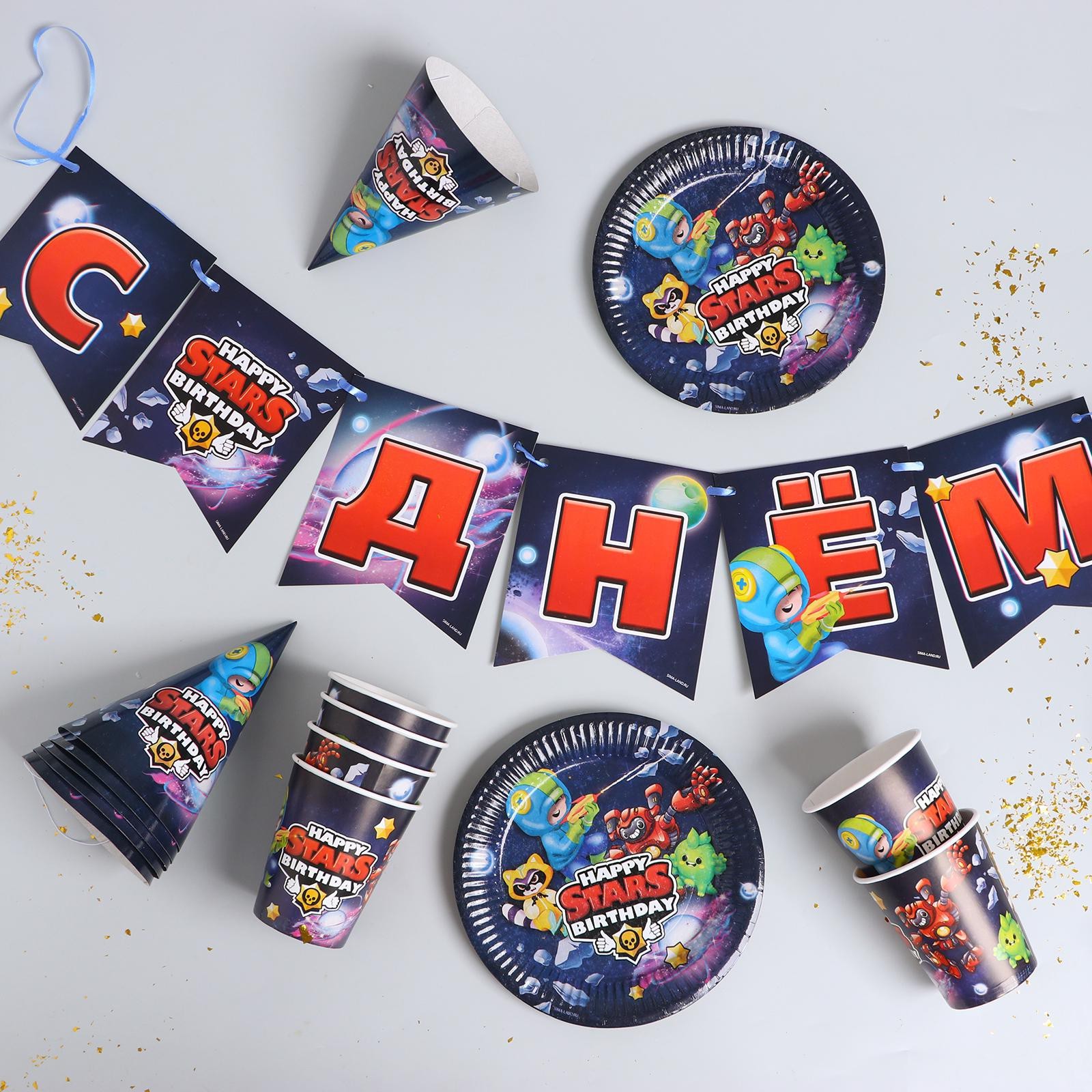 Набор бумажной посуды одноразовый с днём рождения», Stars
