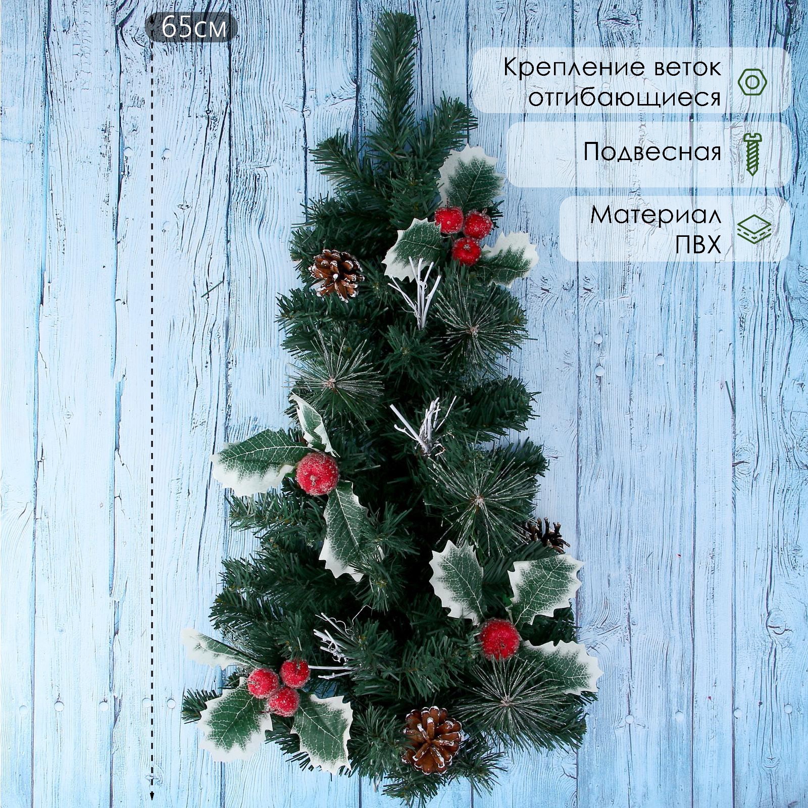 Искусственная ёлка настенная «зимнее волшебство. шишка ягодки», 65 см, пвх ветки отгибаются
