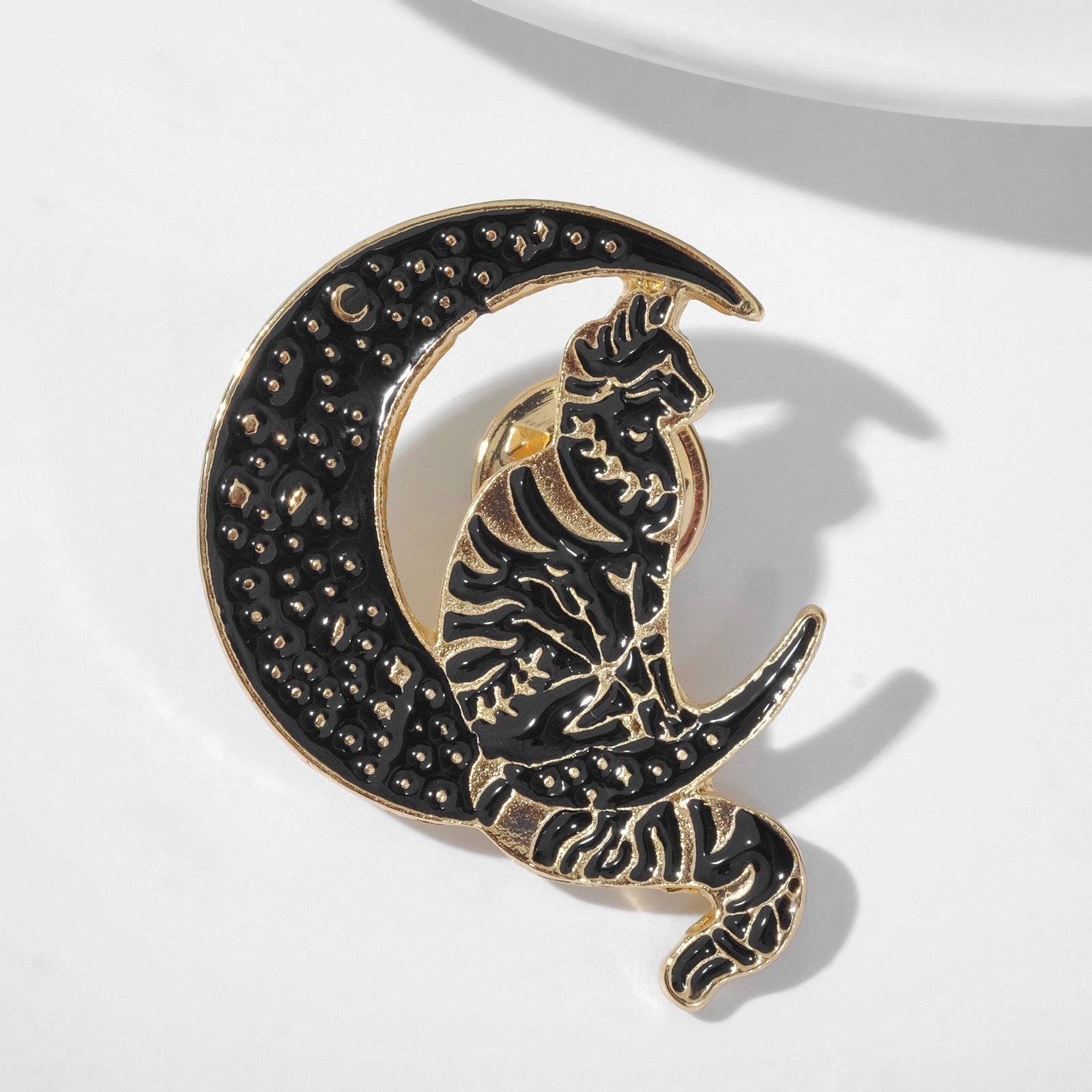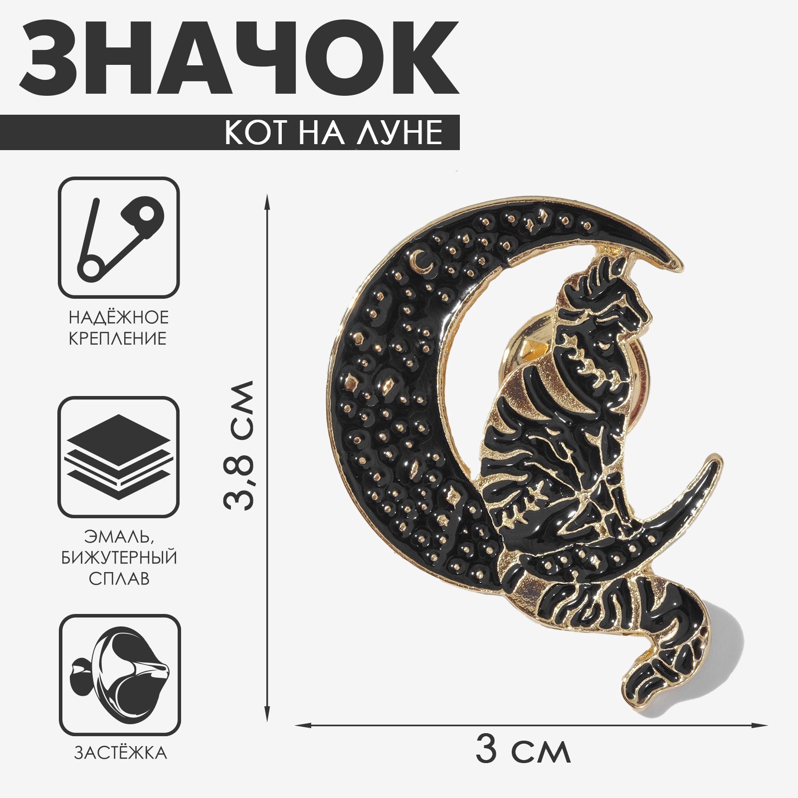 Значок «кот на луне», цвет чёрный в золоте. Значки торговой марки Queen Fair – это идеальный способ самовыражения и стильный аксессуар на каждый день. В ассортименте представлены значки на любой вкус: от животных и насекомых до тематик еды, напитков и людей. Это отличный подарок, с которым можно подчеркнуть индивидуальность. Разнообразие рисунков и видов позволит каждому найти свое украшение, а среди широкого выбора есть даже наборы значков и милые неразлучники для пар. Queen Fair – это качественная бижутерия, которая добавит яркие акценты и выразительность в любой образ! Советы по уходу за бижутерией: Храните изделия отдельно друг от друга в сухом месте не пропускающем солнечные лучиСнимайте украшения перед контактом с водойСнимайте украшение перед использованием парфюма и кремовПосле каждой носки протирайте аксессуары салфеткой из микрофибрыНабор:Нет|Цвет:Чёрный|Для кого:Для женщины|Для кого:Для девочки|Длина, см:3.8|Тематика праздника:Универсальная тематика|Адресат:Без адресата|Материал:Эмаль|Материал:Силикон|Материал:Металл|Цвет фурнитуры:Золотой|Вид:Значок|Вставка/Подвеска:Эмаль|Материал основания:Металл|Материал основы:Металл|Тематика:Кот|Страна:Китай  развернуть описание ▼