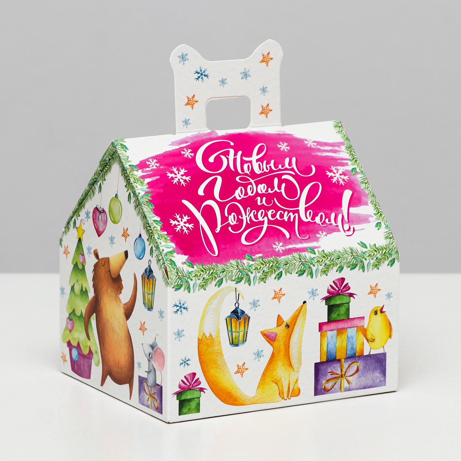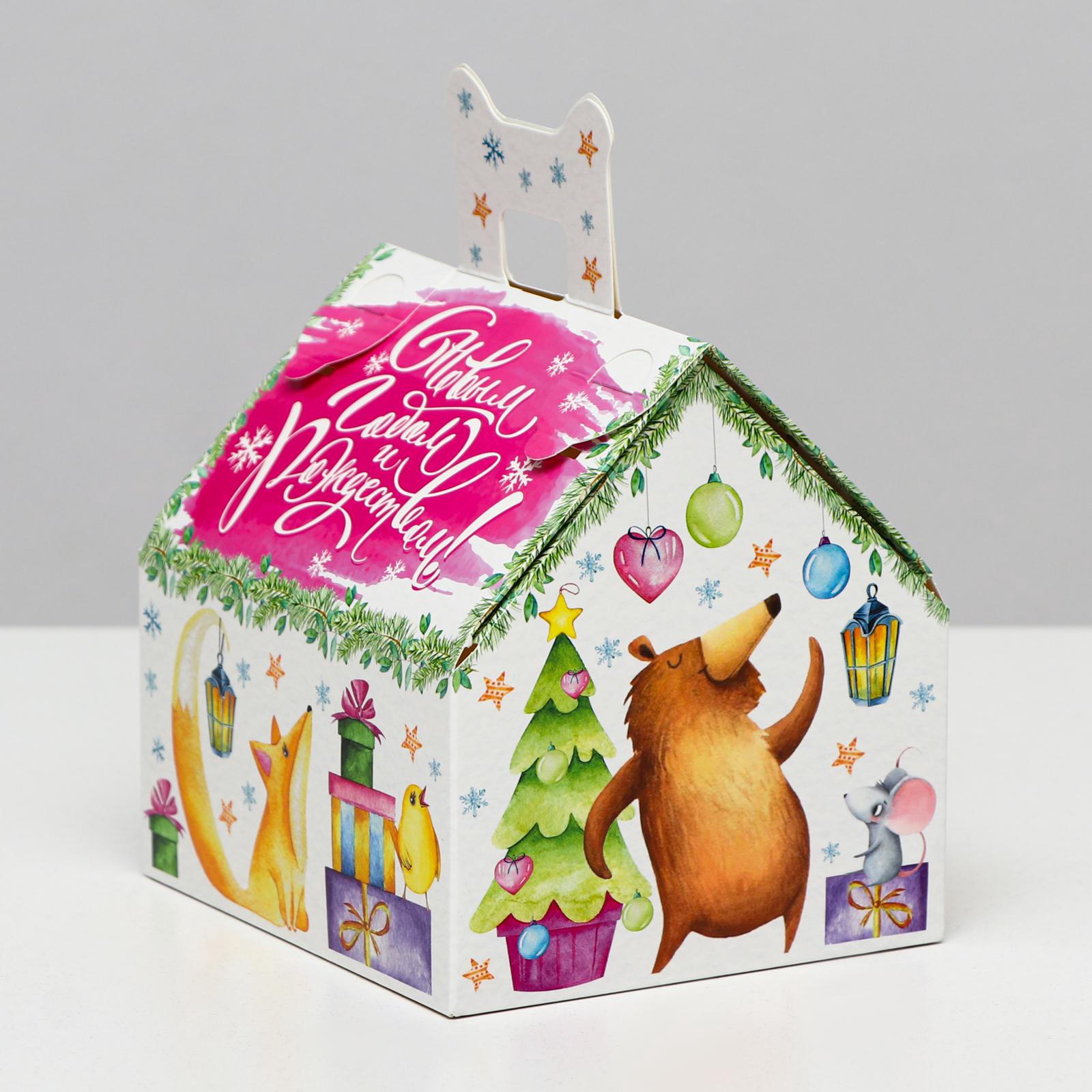 Подарочная новогодняя коробка акварельная серия. домик средний, для сладких подарков, 13.3 11.6 12.6 см. Новогодняя сказка в акварельных тонах! Коробка-домик из акварельной серии — очаровательная упаковка для сладких подарков. Нежные переливы цветов и форма сказочного домика создают праздничное настроение. Компактный размер 13.3 11.6 12.6 см: Вместит набор конфет, шоколадные фигурки или небольшой сувенир. Фигурная форма домика выглядит уютно.Плотный картон 280 г/м : Сохраняет форму подарка. Разъёмная крышка удобна для наполнения.Уникальный акварельный дизайн: Нежные цветовые переходы с новогодними узорами выглядят изысканно. Без символа года — универсален для зимних праздников.Практичное применение: Подходит не только для сладостей, но и для косметических миниатюр или бижутерии.Создаёт атмосферу домашнего уюта: Этот домик с акварельным оформлением станет милым дополнением к новогоднему подарку. Идеальный вариант для тех, кто ценит стильные детали — просто наполните сладостями, и трогательный презент готов! Цвет:Разноцветный|Форма:Фигурная|Плотность, г/м :280|Длина, см:13.3|Ширина, см:11.6|Высота, см:12.6|Тематика:Новогодняя|Рисунок:Да|Символ года:Нет|Тематика праздника:Новый год|Материал:Картон|Вид:Контейнер с разъёмной крышкой|Вид:Фигурные|Размер:Малый (11-17 см)|Окошко:Нет|Крышка-дно:Нет|Страна:Россия  развернуть описание ▼