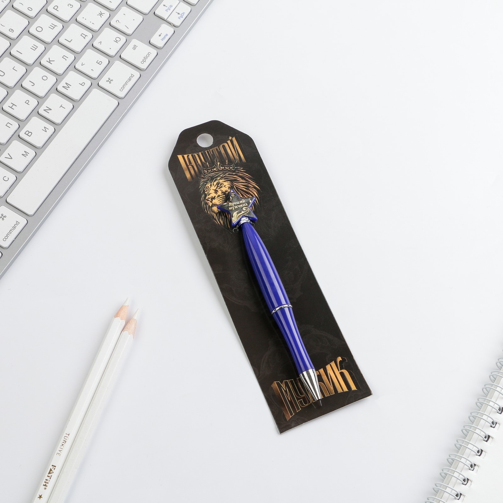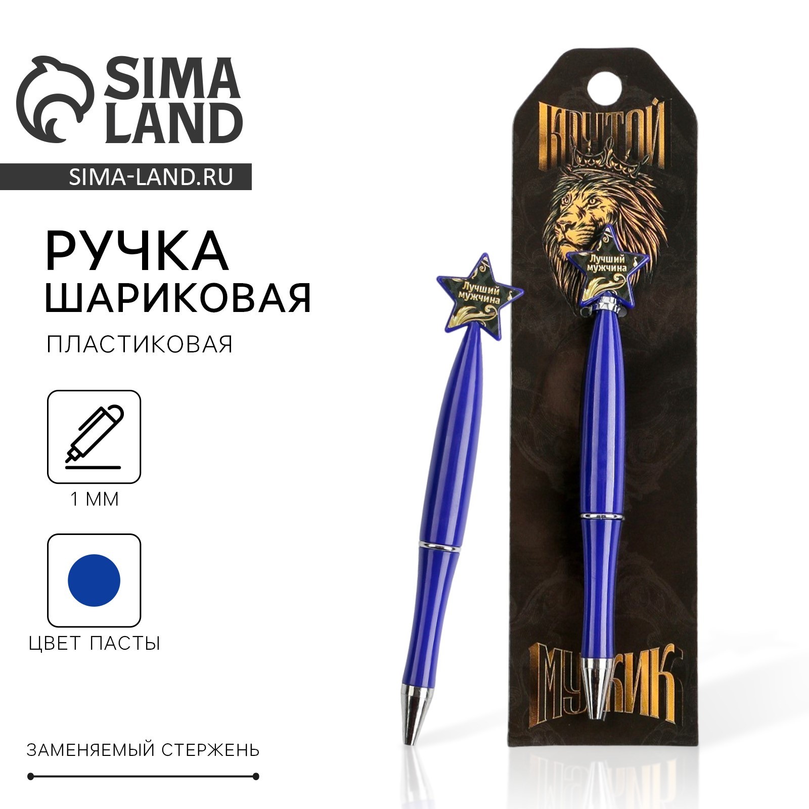 Ручка шариковая синяя паста «крутой мужик», пластик, со звездой на подложке-погон. Ручка отличное дополнение к подарку. Яркий дизайн несомненно привлечет внимание и будет выделяться среди других предметов, а удобная форма корпуса позволит использовать ее с комфортом. Стержень заменяемый: да;Материал: пластик.Диаметр пишущего узла, мм:1|Набор:Нет|Цвет стержня:Синий|Европодвес:Да|Вид упаковки:Подложка|Тематика праздника:23 Февраля|Адресат:Без адресата|Материал:Пластик|Материал упаковки:Картон|Составляющие набора:Ручка|Штрихкод на единице товара:Нет|Наличие грипа:Нет|Страна:Китай  развернуть описание ▼
