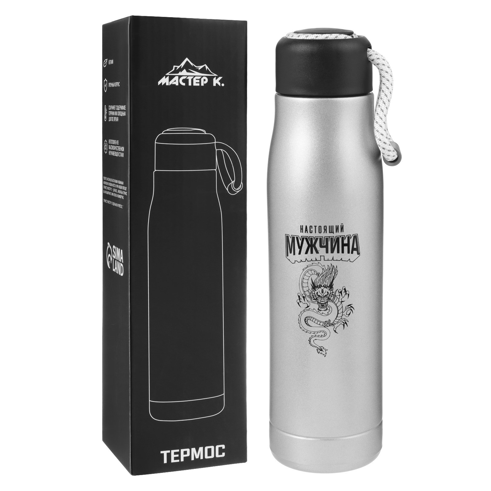 Термос, 600 мл, тraveller "мастер к. дракон", сохраняет тепло 10 ч, 26 х 7 см