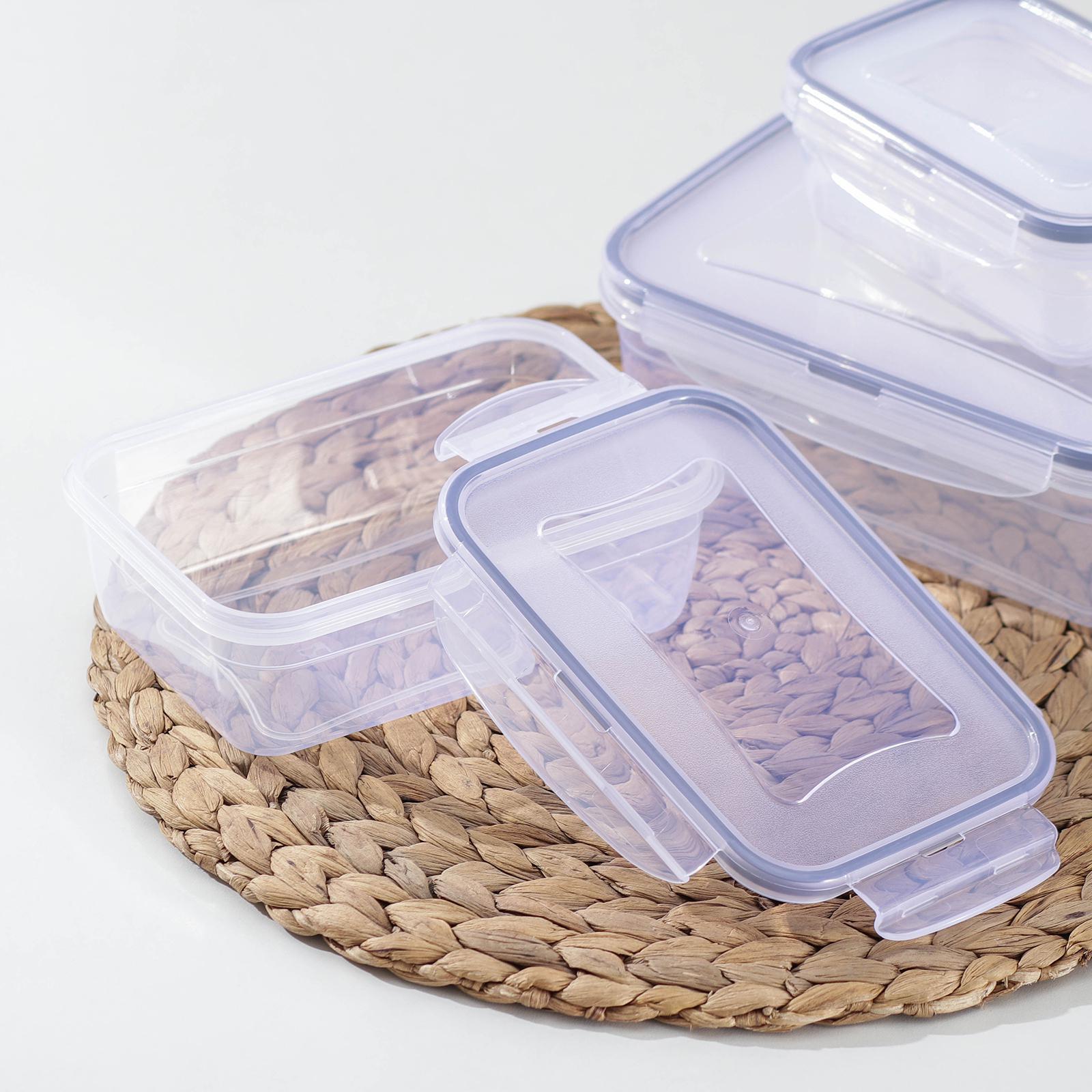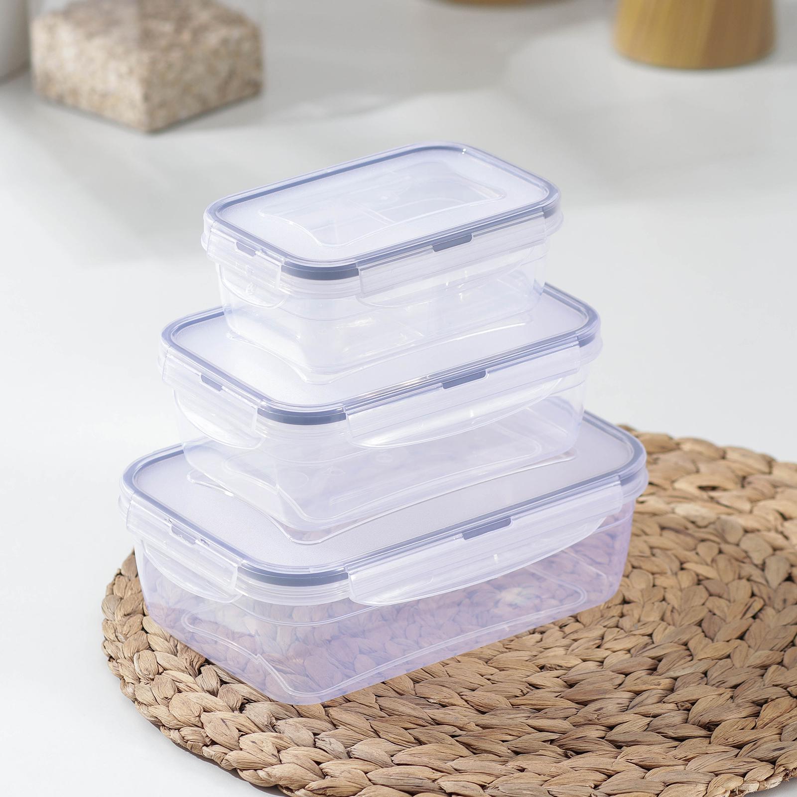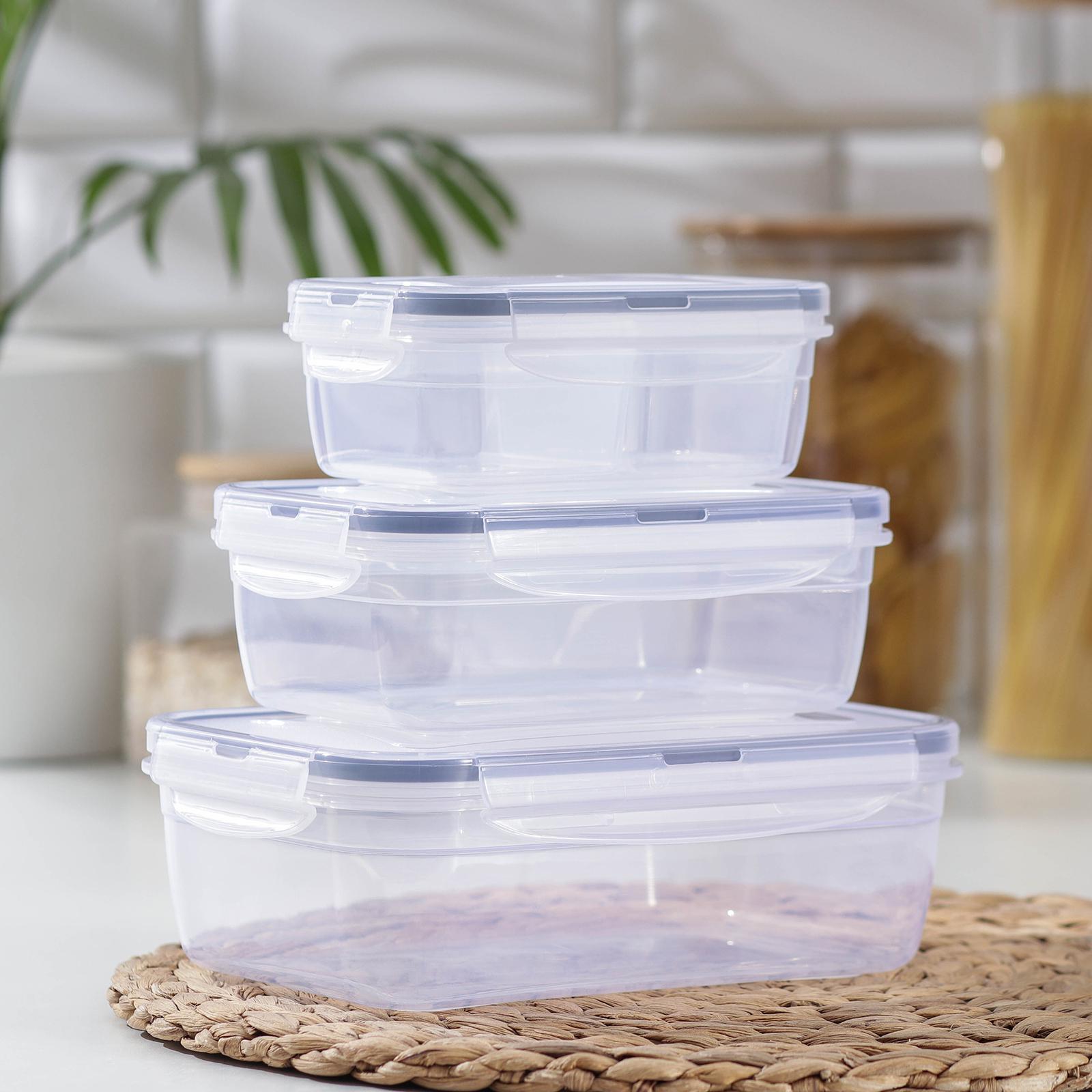 Набор ланч-боксов прямоугольных, 3 шт: 1,3 л, 0,7 л, 0,4 л.   Ланч-бокс для еды - это незаменимая вещь для каждого человека, ведущего активный образ жизни.  Преимущества: Контейнер для еды помогает сохранять свежесть продуктов и носить еду с собой. Экологически чистый материал не выделяет вредных веществ, абсолютно безвреден для здоровья. Контейнеры для хранения выполнены из качественных материалов, что позволяет использовать их долгие годы, не впитывает цвета и запахи. В ланч бокс с отделениями поместится завтрак или обед, который можно взять на работу, учебу, природу и даже на романтическое свидание. Пластиковый ланч-бокс оснащен герметичной крышкой. Современный дизайн и классические формы никого не оставят равнодушным. Эстетичный внешний вид форм позволяет подавать приготовленную пищу в этой же посуде на стол. Контейнер пищевой пригоден для использования в СВЧ печи, холодильнике и посудомоечной машине. Контейнер для еды герметичный, подходит для транспортировки, хранение на кухне, хранения в холодильнике, заморозки продуктов.  Цвет: Серый Цвет: Прозрачный Форма: Прямоугольная parts count: 0 В наборе, шт.: 3 Объём, мл: 400 Объём, мл: 700 Объём, мл: 1300 tnved: 3924100000 Материал: Пластик Складной: Нет Герметичная крышка: Да Наличие столовых приборов: Нет Можно использовать в СВЧ-печи: Да Форма: Прямоугольник  развернуть описание ▼