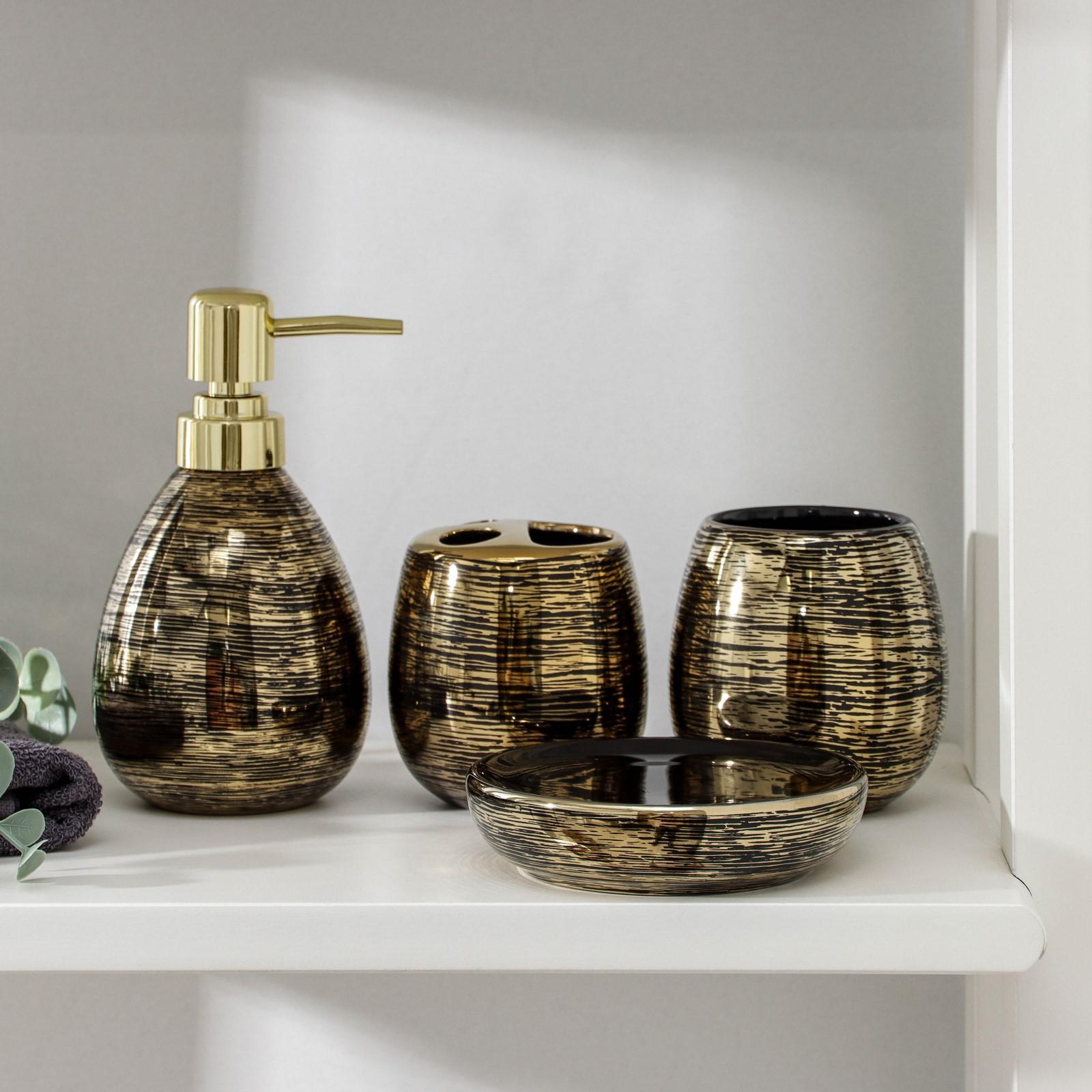 Набор аксессуаров для ванной комнаты «нити», 4 предмета (мыльница, дозатор 400 мл, 2 стакана), цвет золотой