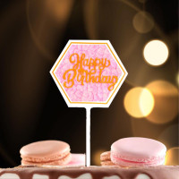 Топпер «с днём рождения». Топпер подойдёт для украшения праздничного стола, букета, торта или пирожного. Тематический декор подарит праздничное настроение и станет акцентной деталью сервировки или подарка. Цвет: Розовый Высота держателя, см: 8 Материал: Пластик Вид: Топпер  развернуть описание ▼