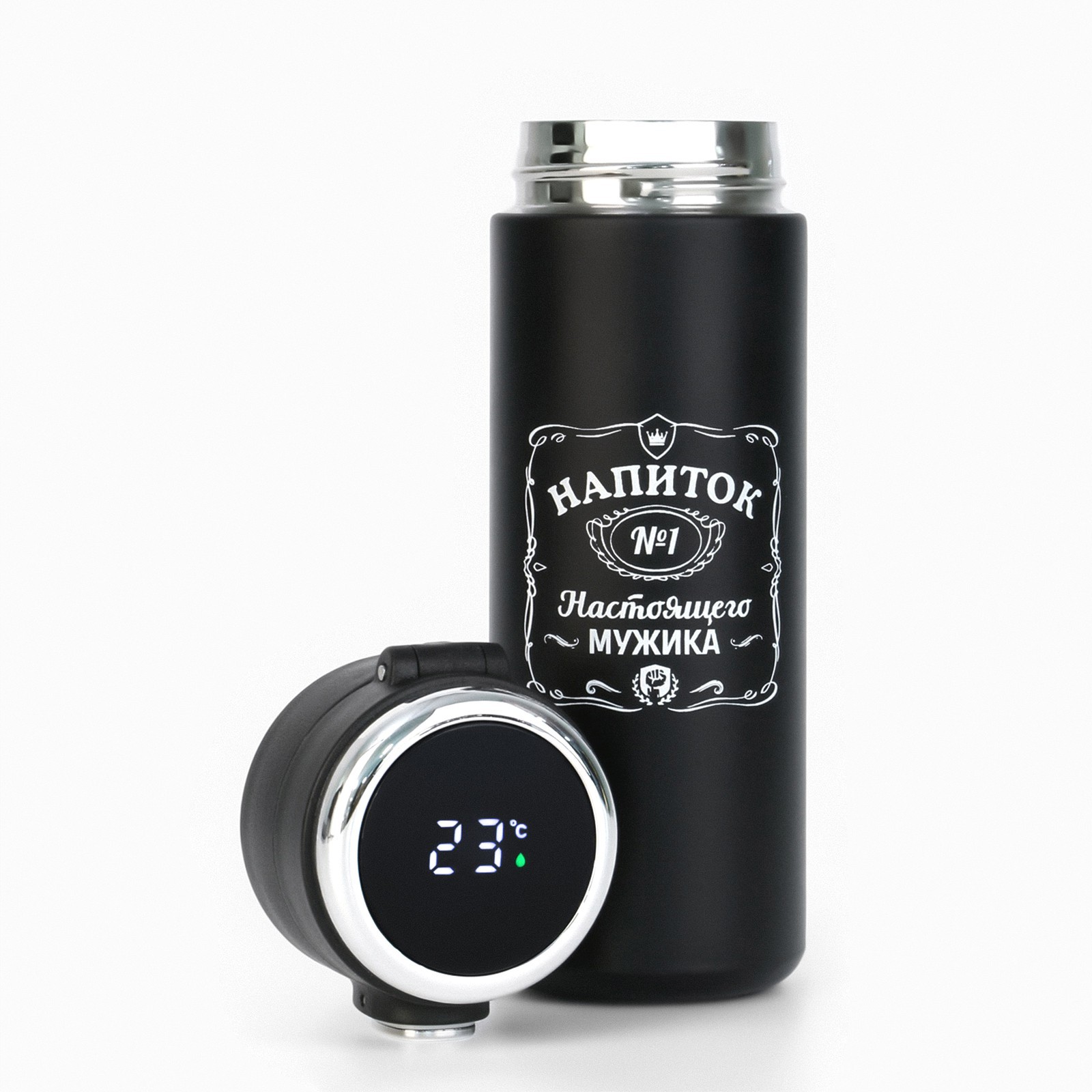 Термокружка, 420 мл, Simple "напиток мужика", сохраняет тепло 8 ч, термометр