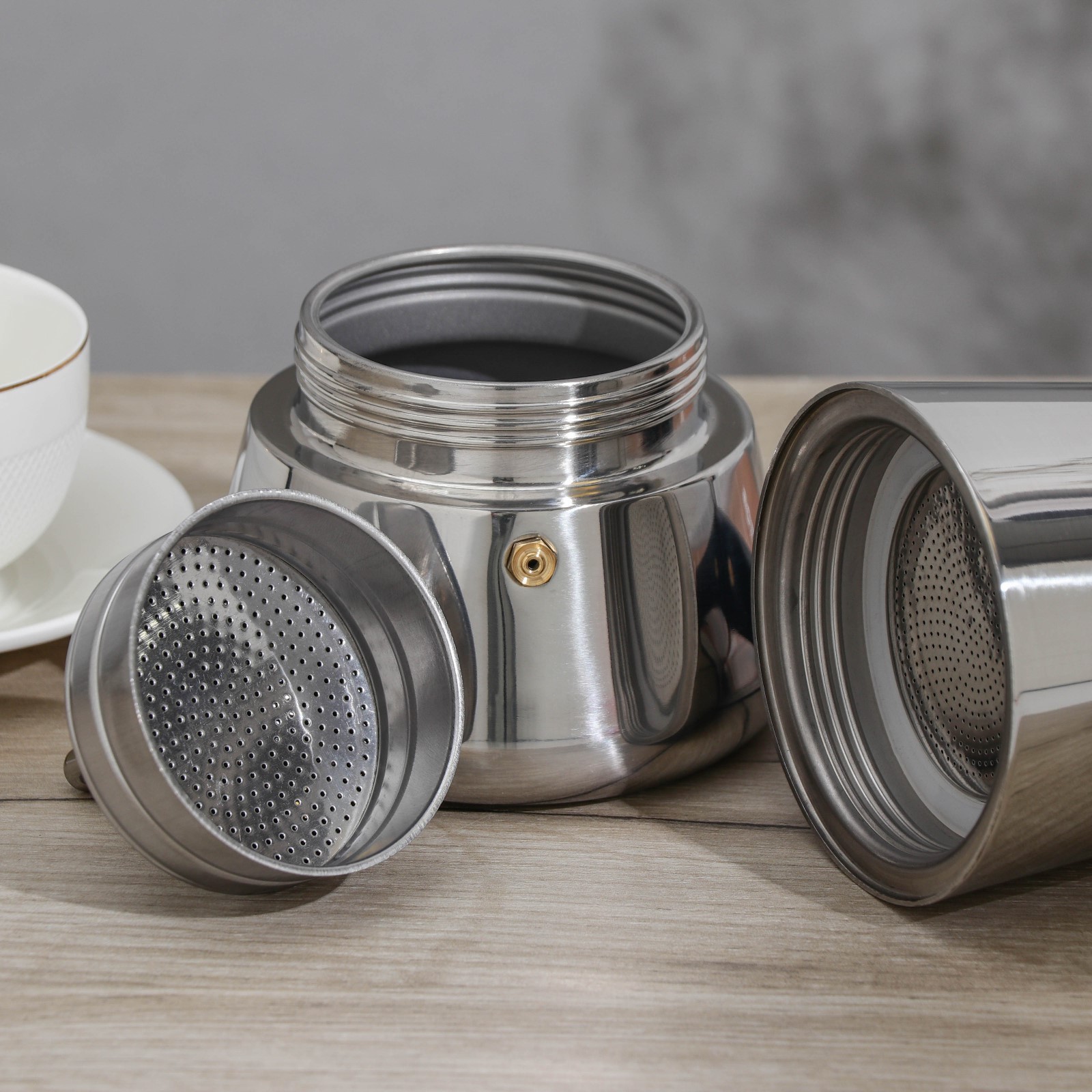 Кофеварка гейзерная magistro classic, на 9 чашек, 450 мл, нержавеющая сталь. Как приготовить самый вкусный кофе в гейзерной кофеварке? Для начала отвинтите верхнюю часть и достаньте фильтр-воронку. Налейте в нижний резервуар воды до уровня предохранительного клапана. Важно: клапан должен остаться над водой – это нужно для того, чтобы в случае перегрева кофеварки давление в нижнем резервуаре не превысило критической отметки. Наполните воронку молотым кофе. Обязательно учитывайте, что необходим помол именно для гейзерной кофеварки. Вставьте воронку в нижний резервуар, уберите излишки кофе с бортиков, чтобы они не прилипли к уплотнителю, и крепко прикрутите верхнюю часть на место. Поставьте кофеварку на плиту. Маленький секрет: варите кофе на медленном огне – лучше подождать на пару минут дольше, но получить идеальный кофе. Когда вы и увидите, что кофе полностью вышел в верхний резервуар, а из столбца выходит уже не кофе, а жидкая пена, снимите кофеварку с огня. Ваш свежесваренный и ароматный кофе готов! С ним утром будет по-настоящему добрым. Цвет: Хромированный Количество чашек: 9 Объём, мл: 450  развернуть описание ▼