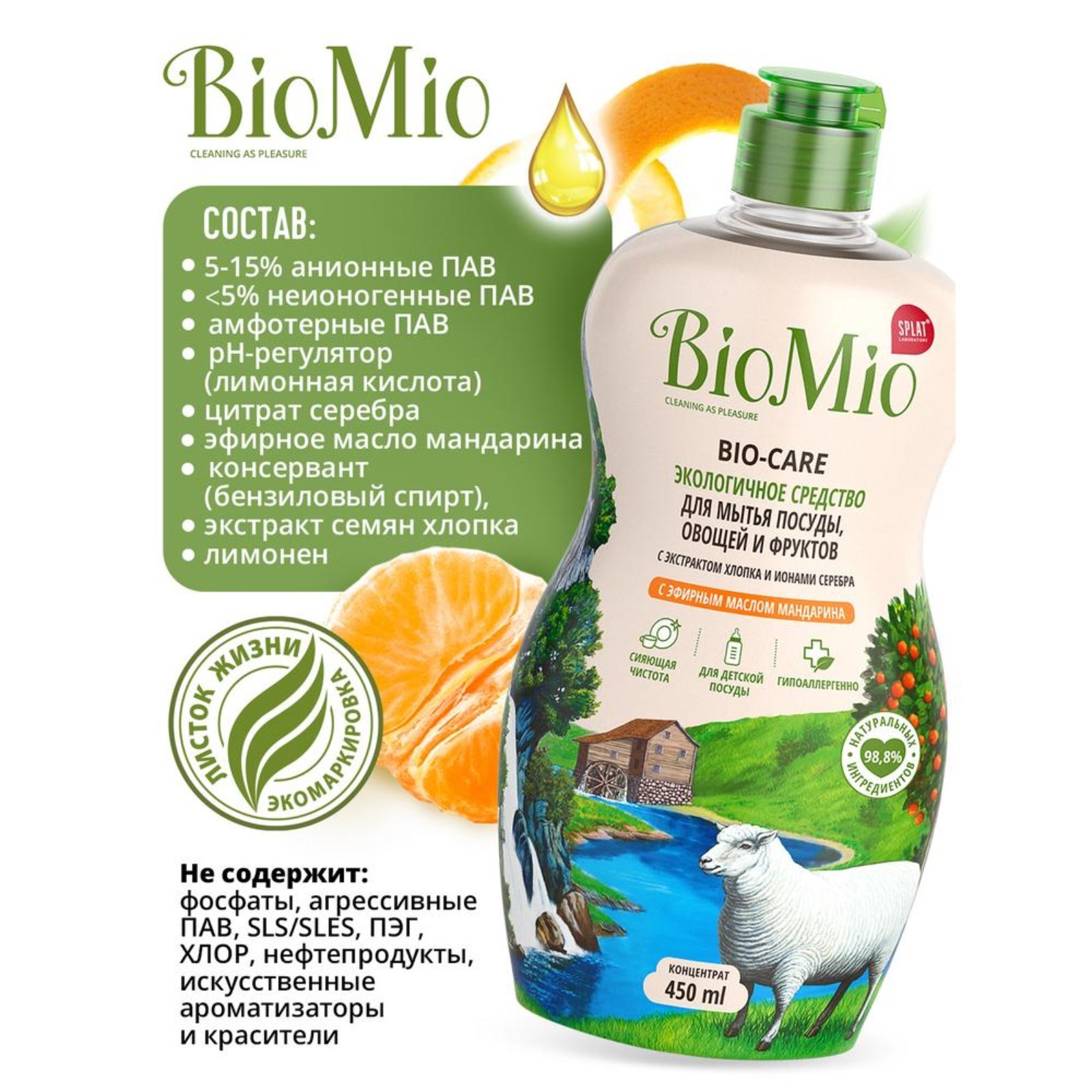 Средство для мытья посуды, овощей и фруктов Biomio Bio-care "мандарин", концентрат, 450 мл
