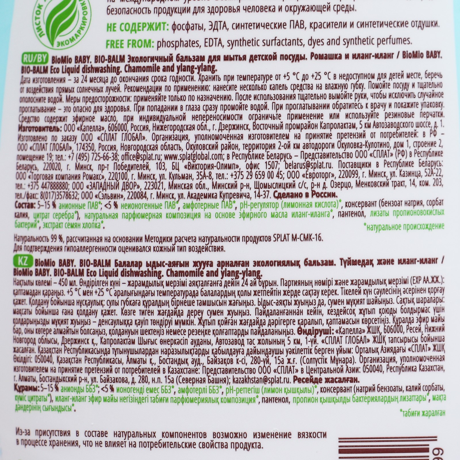 Средство для мытья Biomio Baby Bio-balm, для детской посуды, 450 мл