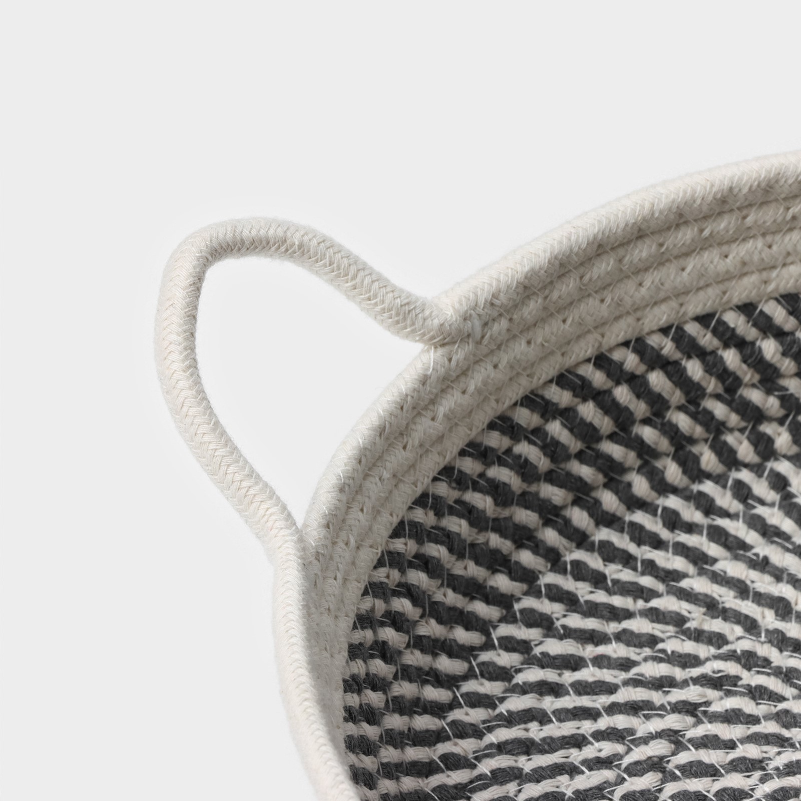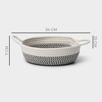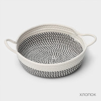 Array. Представляем вам универсальную корзину для хранения вещей, которая станет незаменимым аксессуаром в вашем доме! Она идеально подходит для хранения и впишется в интерьер любой комнаты. Преимущества: Уникальность наших корзинок в том, что все изделия – ручной работы. Корзинка изготовлена из экологичного материала. Дизайн корзины подойдет для интерьеров в стиле: скандинавский, рустик, лофт, этно, фьюжен, фьюжн, кантри, деревенский, бохо, афро, шале. Такие корзины хорошо комбинировать натуральными материалами – текстиль, керамика, камень, кирпич. Получится уютный и вместе с тем динамичный интерьер. Применение: Милая интерьерная корзинка прекрасно подходит для размещения в прихожей или гардеробной. Она станет удобным и стильным органайзером для одежды, шапок и других головных уборов, белья. На кухне корзину можно использовать для хранения полотенец, хозяйственных принадлежностей, бытовой химии или даже продуктов. В корзинке можно компактно и эстетично разместить пряжу и другие принадлежности для рукоделия, вязания, шитья, швейные инструменты и нитки, а также разнообразные ткани и материалы для творчества. В детской комнате подойдет для хранения игрушек. Корзинка станет замечательным офисным аксессуаром для комфортного размещения книг, журналов и канцелярских принадлежностей. Уход и эксплуатация: Не рекомендуем стирать корзину в стиральной машине. Для устранения местных загрязнений используйте теплую воду, мыло (средство для посуды) и мягкую губку или щетку, но не рекомендуется сильно мочить корзинку. Выбирайте предметы интерьера, которые вдохновляют и делают вас счастливыми. Закажите корзину для хранения на нашем сайте и начните преображение своего дома уже сегодня! Цвет: Серый Форма: Круглая Ширина, см: 34 Высота, см: 7 Глубина, см: 27.5 Крышка: Нет Материал: Хлопок Основной материал: Текстиль Форма: Круг, шар, цилиндр  развернуть описание ▼