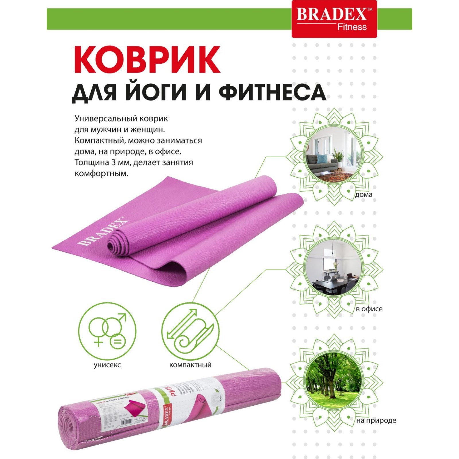 Коврик для йоги и фитнеса Bradex Sf 0401, 173х61х0,3 см, розовый
