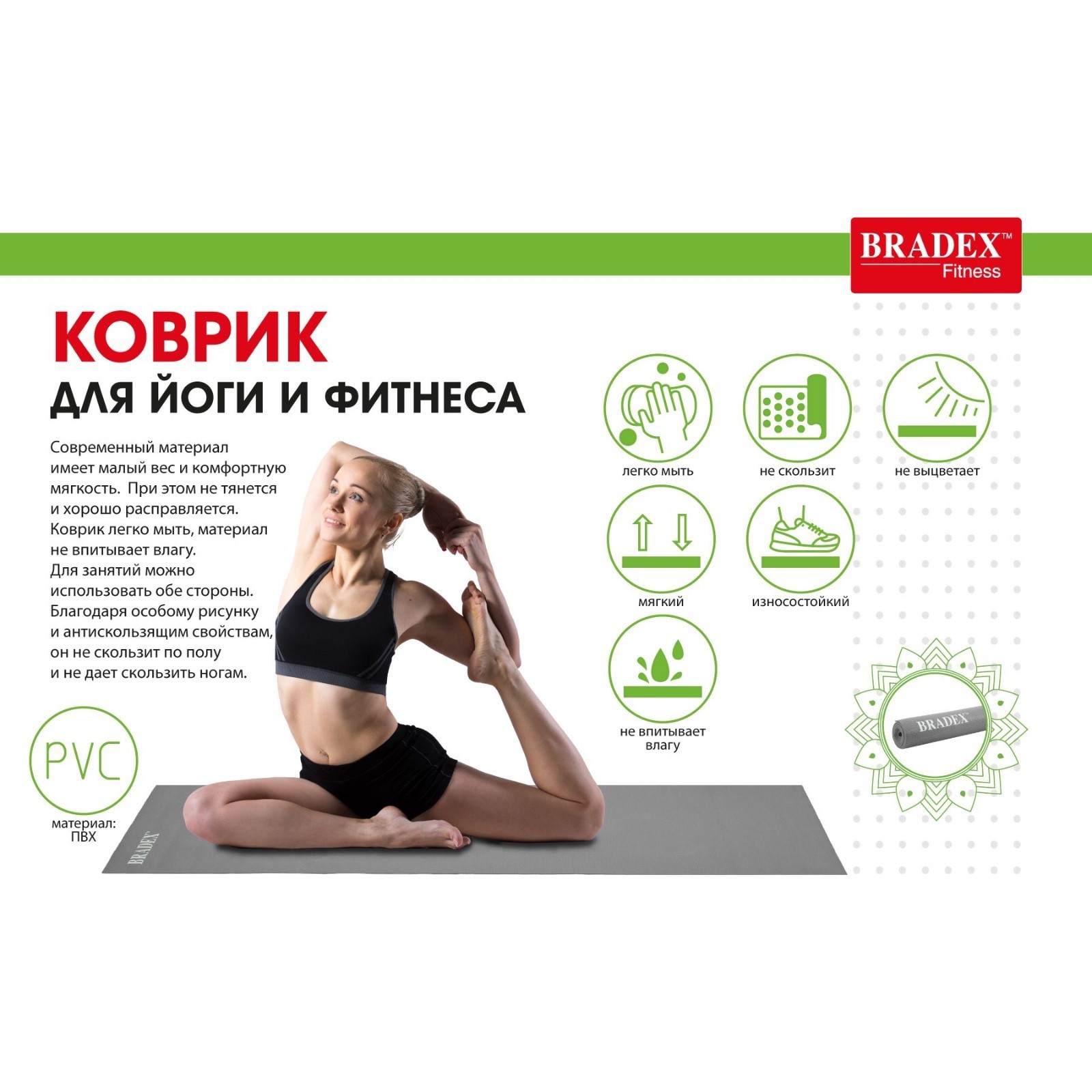 Коврик для йоги и фитнеса bradex sf 0398, 173х61х0,3 см, серый.