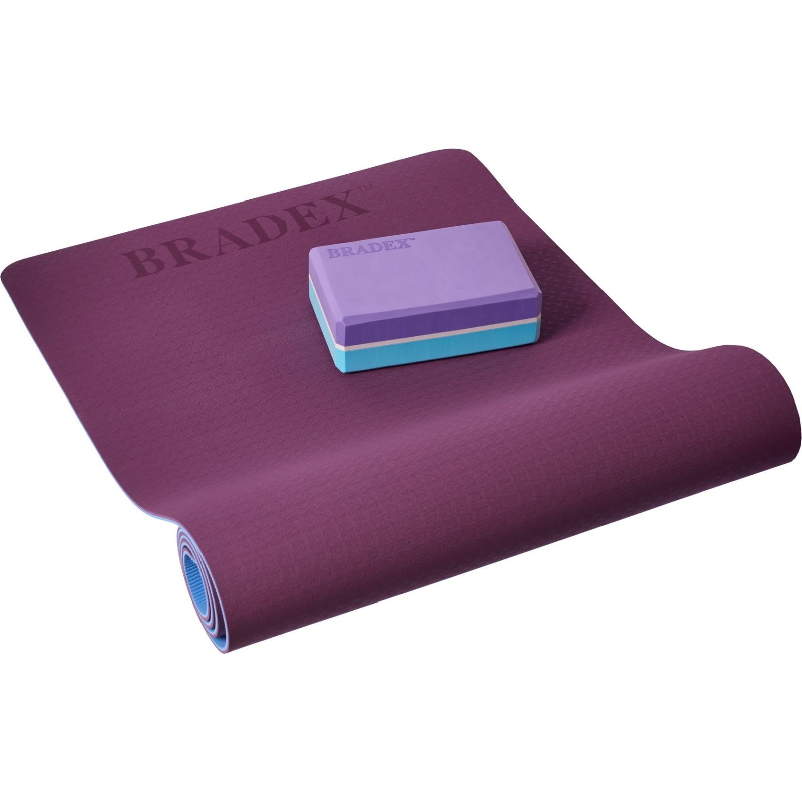 Коврик для йоги и фитнеса bradex sf 0402, 183х61х0,6 см, tpe двухслойный, фиолетовый. Цвет: Фиолетовый Длина, см: 183 Ширина, см: 61 Толщина, мм: 6 Возраст: Любой Материал: Термопластичная резина Особенности: Водоотталкивающий Вид: Классический  развернуть описание ▼