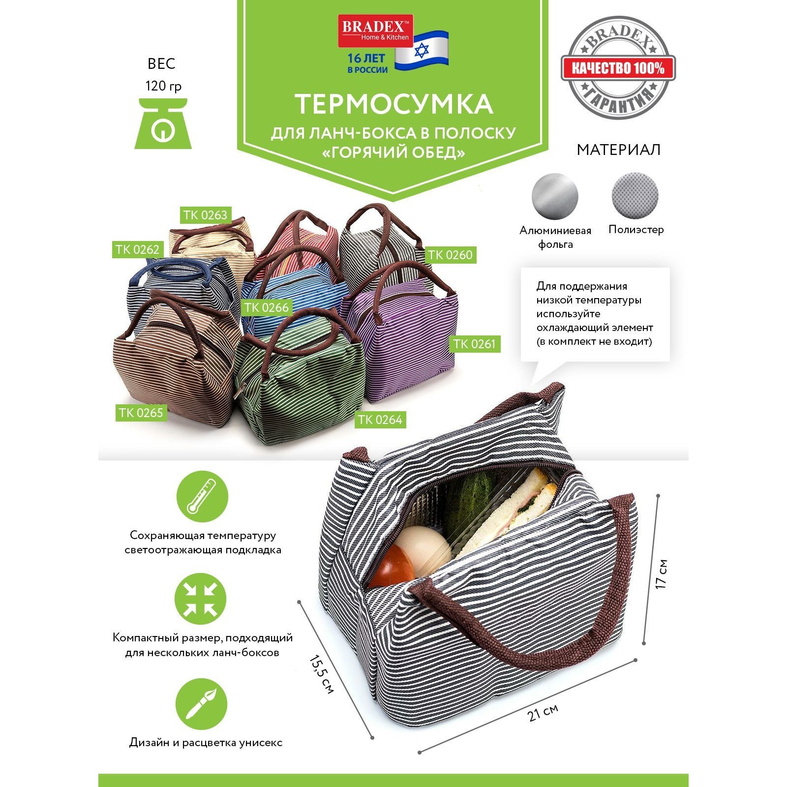 Термосумка для ланч-бокса bradex «горячий обед», в полоску, бежевая. parts count: 0 Материал: Фольга Материал: Полиэстер Вид: Термосумка