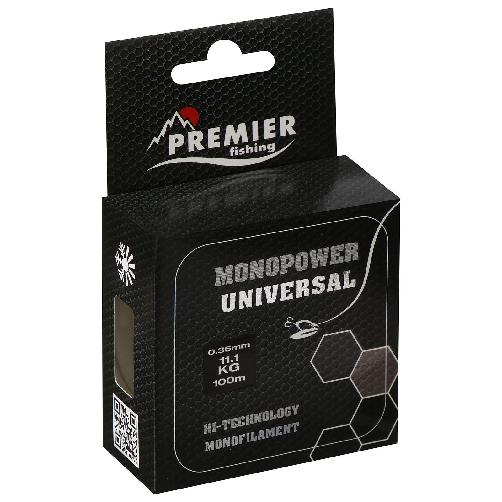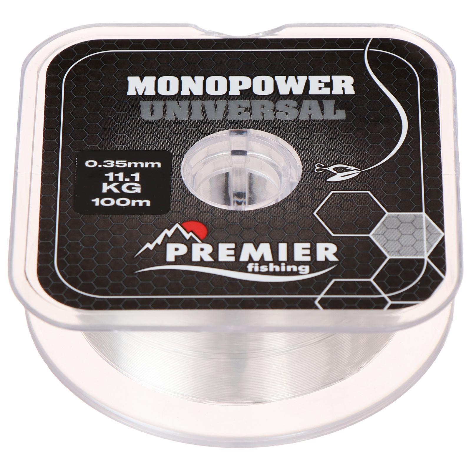 Леска preмier fishing monopower universal, диаметр 0.35 мм, тест 11.1 кг, 100 м, прозрачная. Леска MONOPOWER UNIVERSAL выполнена из высокопрочного монофиламента. Обладает отличными показателями чувствительности, мягкостью и практически не имеет механической памяти. Специальное гладкое покрытие защищает леску от намокания и повреждений. Она эластична, хорошо амортизирует рывки, обладает высокой износостойкостью. Прозрачная леска подходит для большинства видов ловли: поплавочной, фидерной, спиннинга, а также может применяться для зимней ловли на мормышку и для оснащения зимних удочек. Леска адаптирована для применения в пресной и в солёной воде. Можно использовать и для зимней рыбалки. Преимущества: высокая устойчивость к истиранию;точно калиброванный диаметр;превосходная мягкость;минимальная механическая память;стойкость к ультрафиолету. Цвет: Прозрачный Диаметр, мм: 0.35 Длина, м: 100 parts count: 0 Разрывная нагрузка, кг: 11.1 Температурное ограничение: Нет Материал: Нейлон  развернуть описание ▼