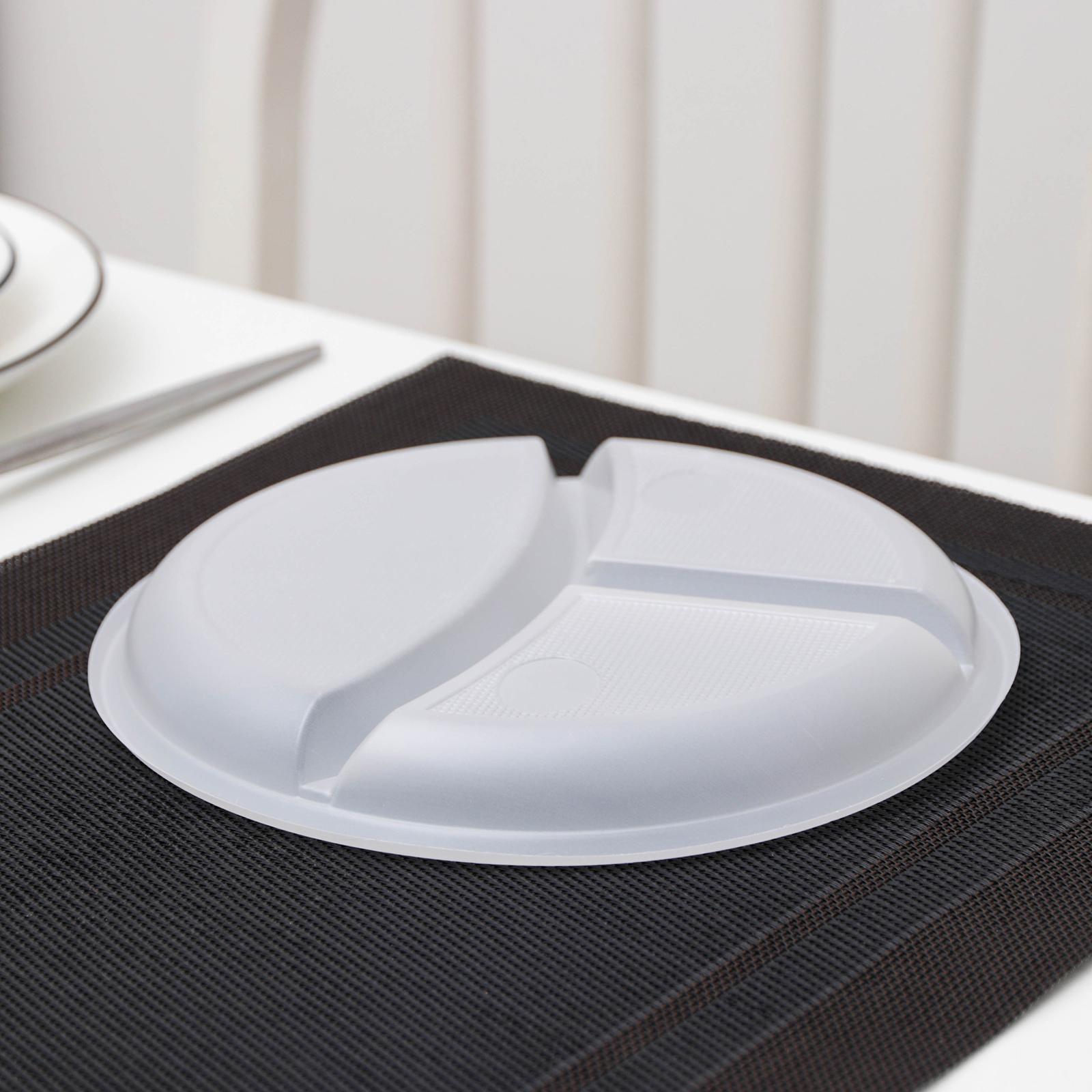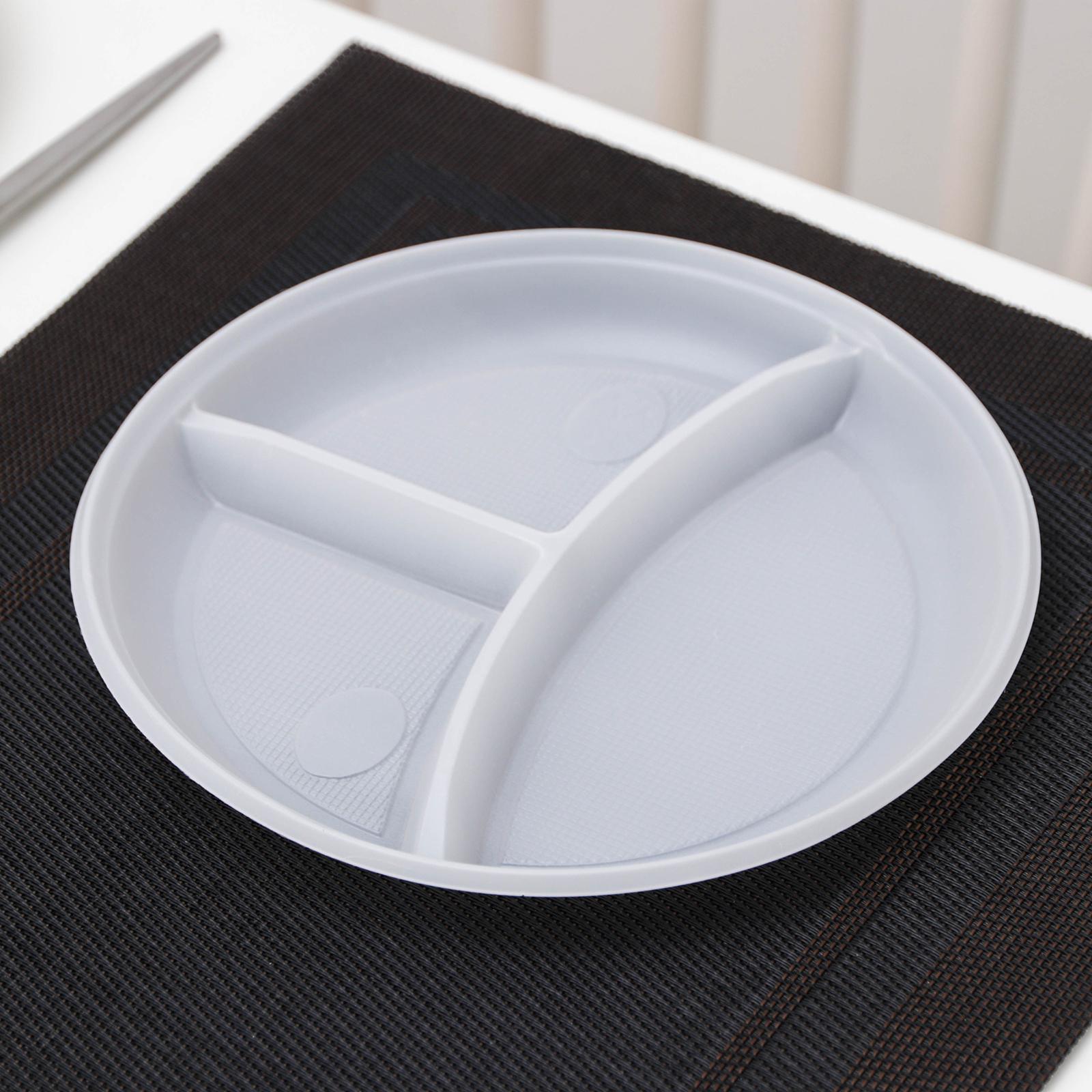 Тарелка пластиковая одноразовая, D=20,5 см, 3 секции, цвет белый