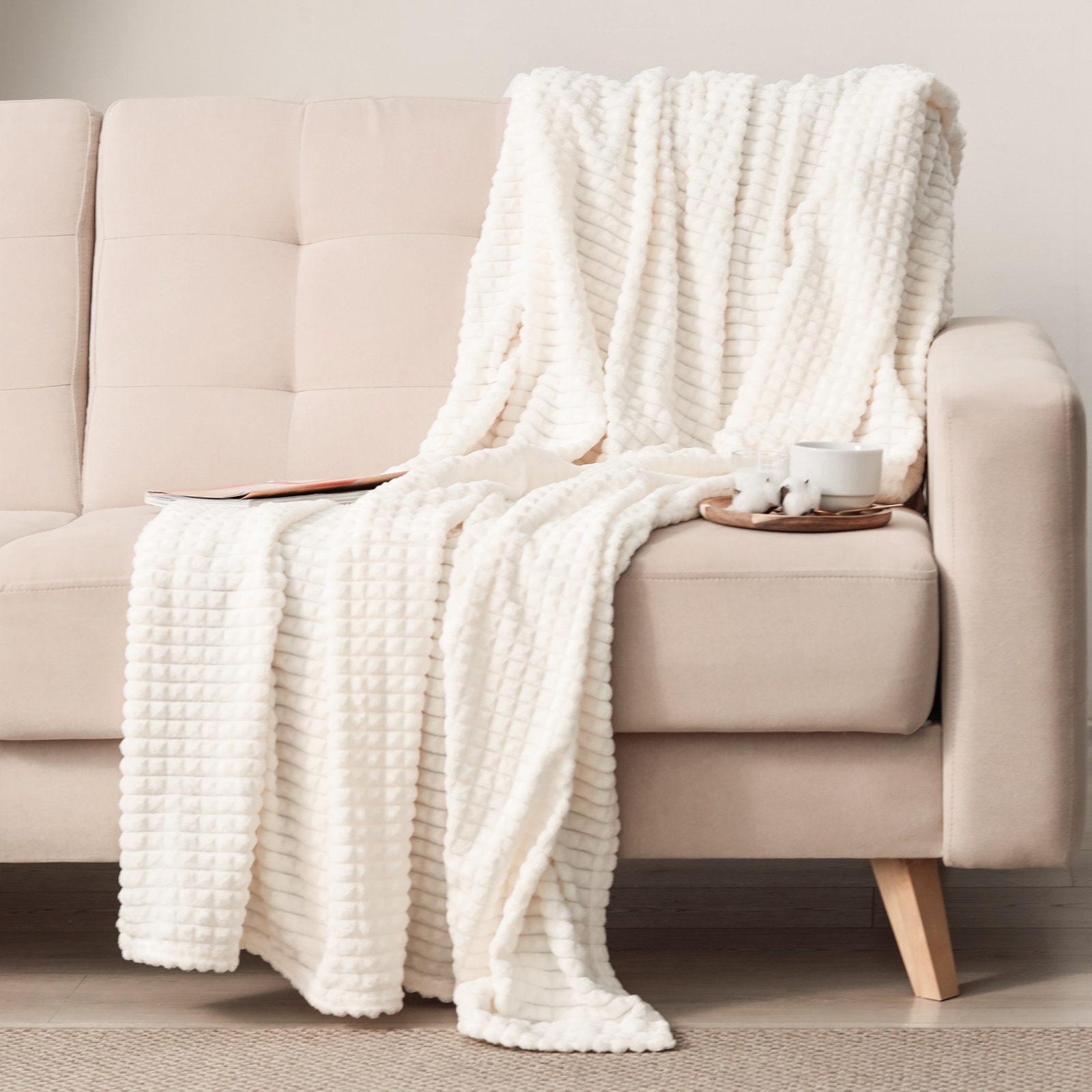 Плед «этель. клетка», 150 200 см, корал-флис, молочный