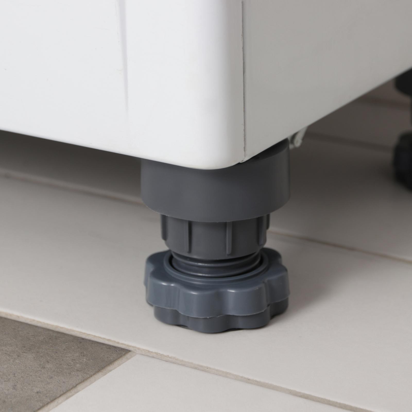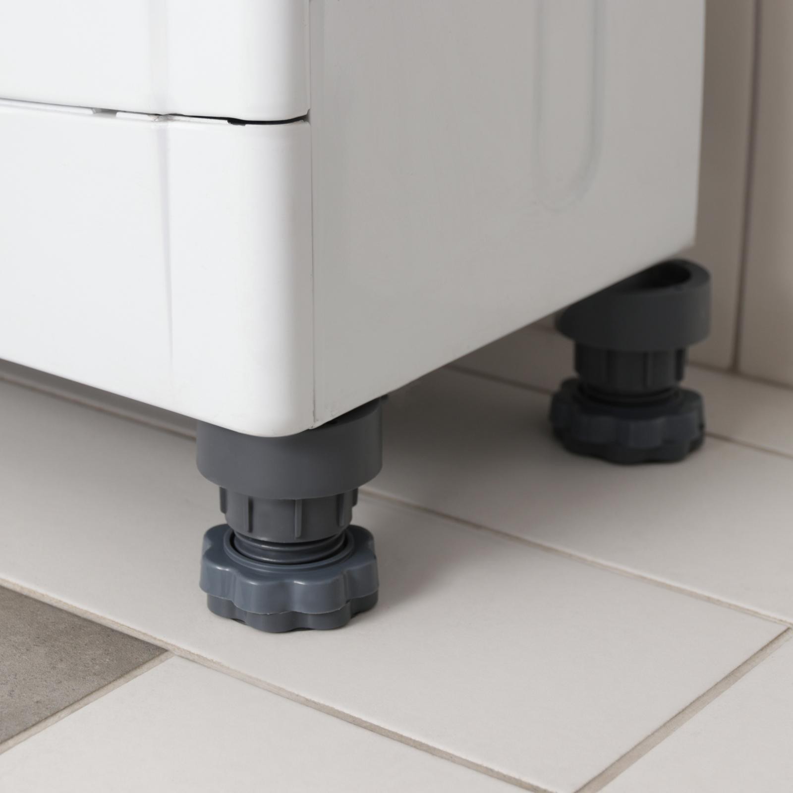 Подставки для стиральной машины, антивибрационные, раздвижные, 4 шт, 6,5x8-10 см, d=4,7 см. Антивибрационные подставки — идеальное решение для снижения шума и вибрации стиральных машин и холодильников. Благодаря им ваша техника будет работать бесшумно, а напольное покрытие останется невредимым. В набор входят четыре подставки, которые легко устанавливаются под ножки приборов. Не упустите возможность сделать свою жизнь более комфортной и тихой! Цвет: Чёрный Диаметр, см: 4.7 Материал: Пластик  развернуть описание ▼