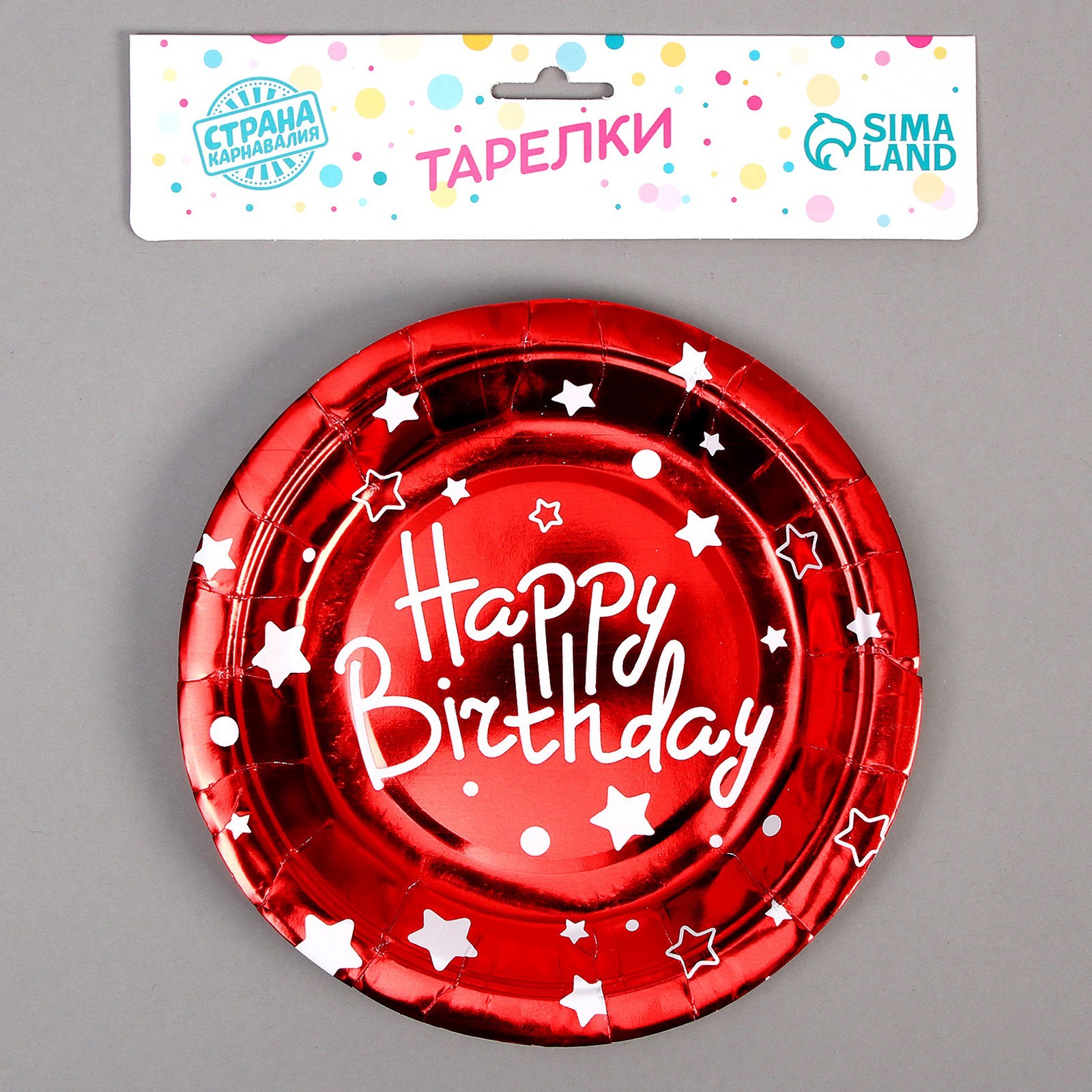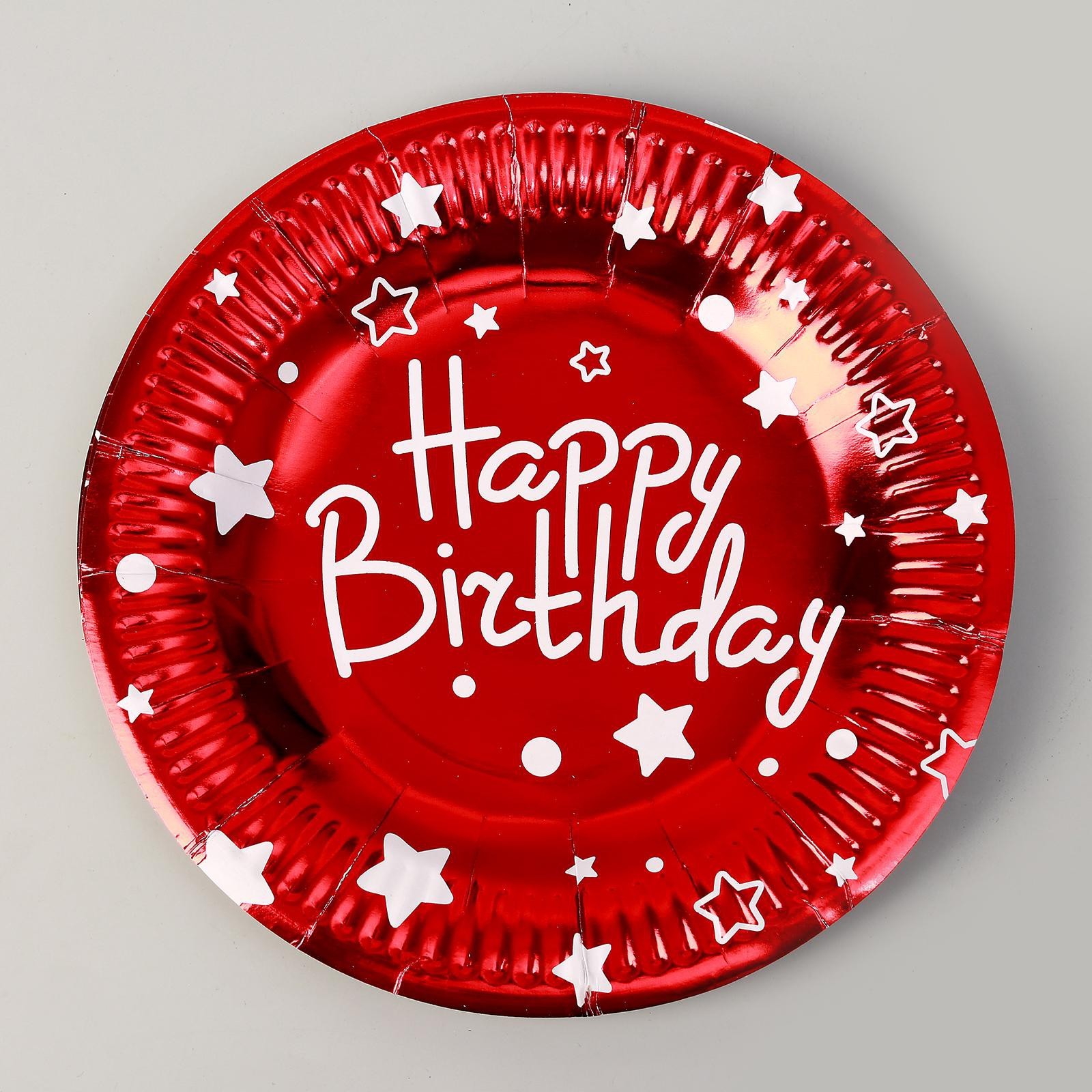 Тарелки бумажные «с днём рождения», набор, 6 шт., цвет красный