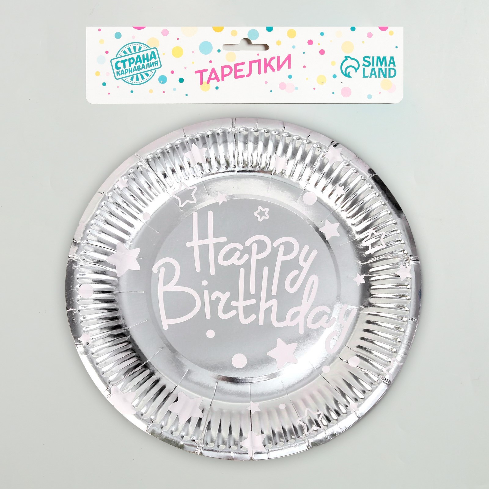 Тарелки бумажные «с днём рождения», в наборе 6 штук, цвет серебро