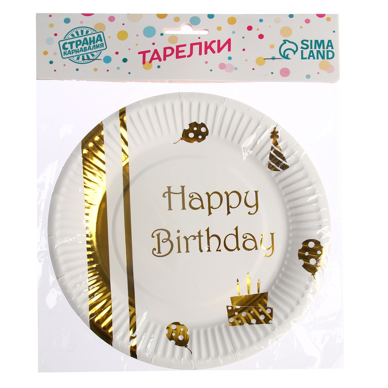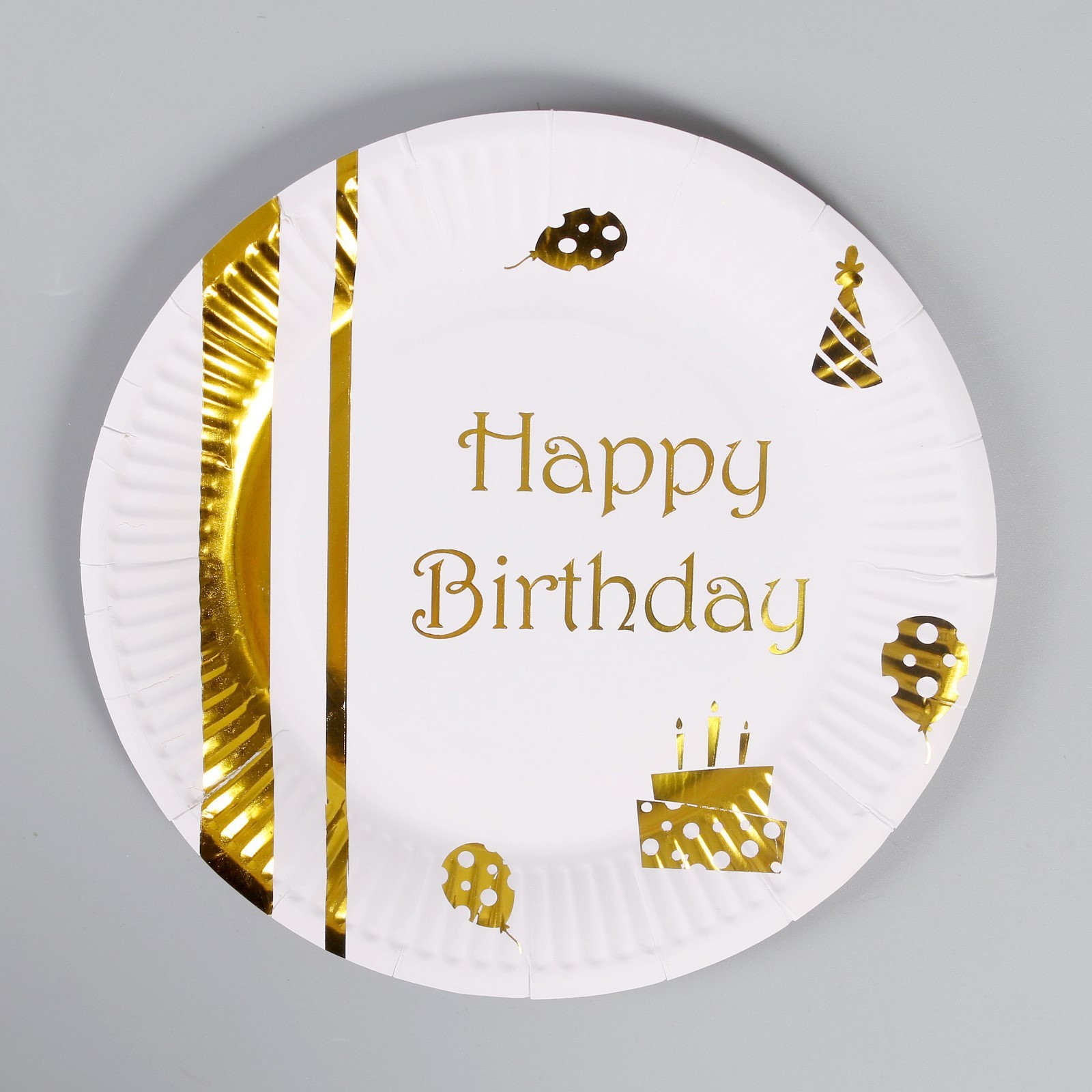 Тарелки бумажные «с днём рождения», набор, 6 шт., тиснение, цвет золотоо