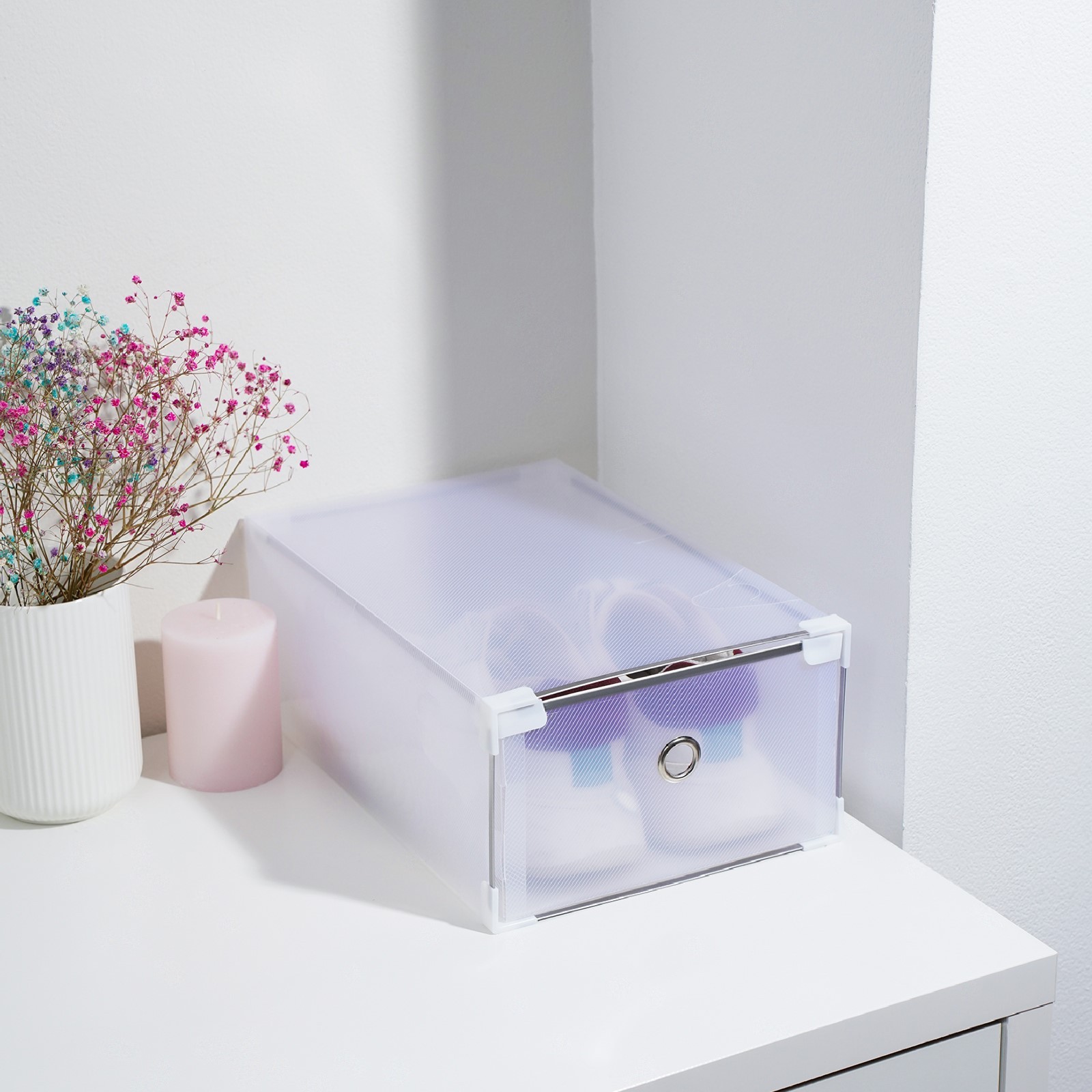 Коробка для хранения обуви выдвижная доляна Large Size, 22x34x13 см, цвет белый