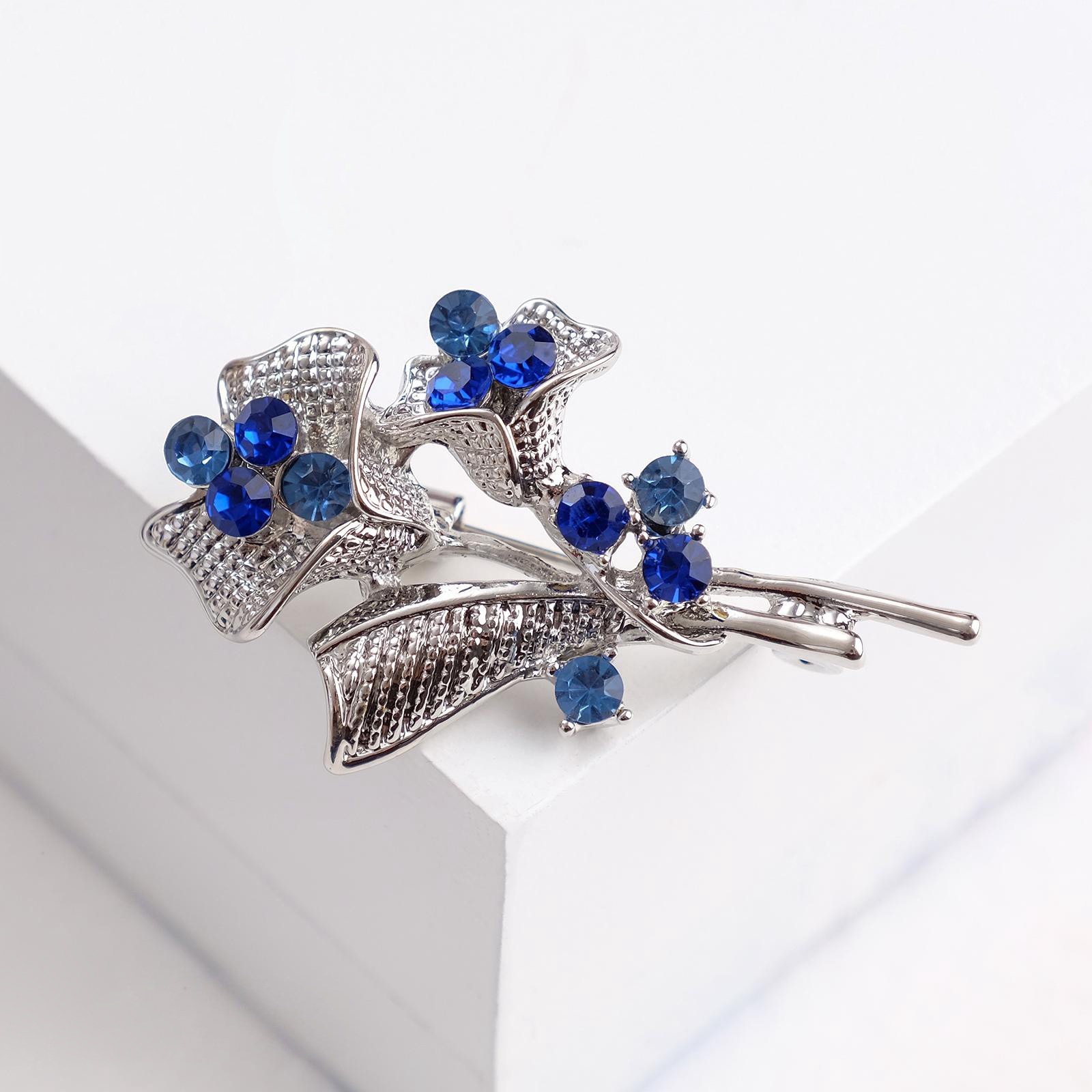 Брошь «цветы» букет незабудок, цвет сине-голубой в серебре