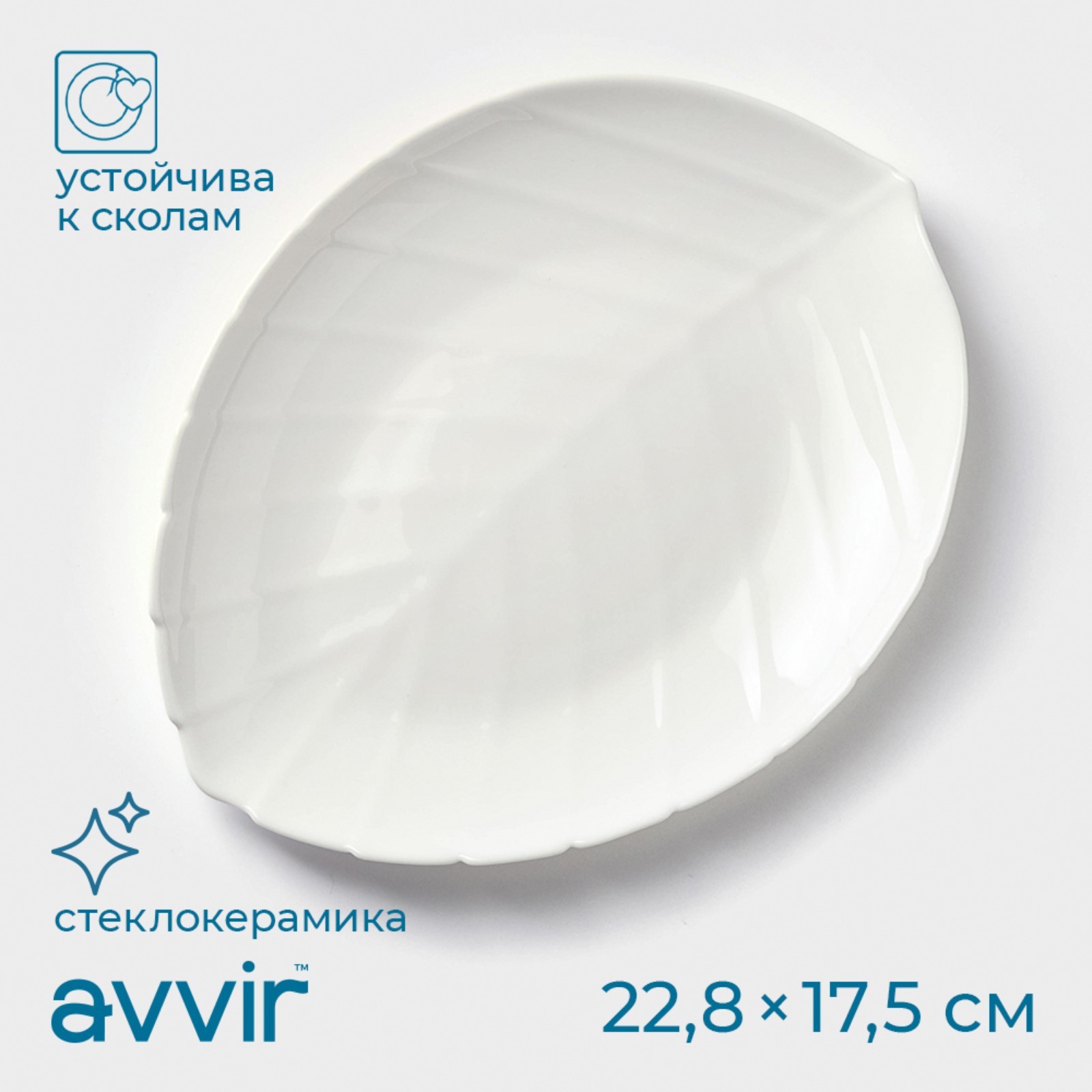 Блюдо сервировочное Avvir «лист», 22,8x17,5x2 см, стеклокерамика, цвет белый