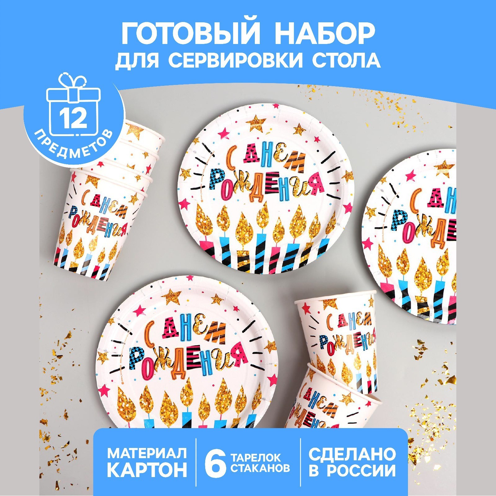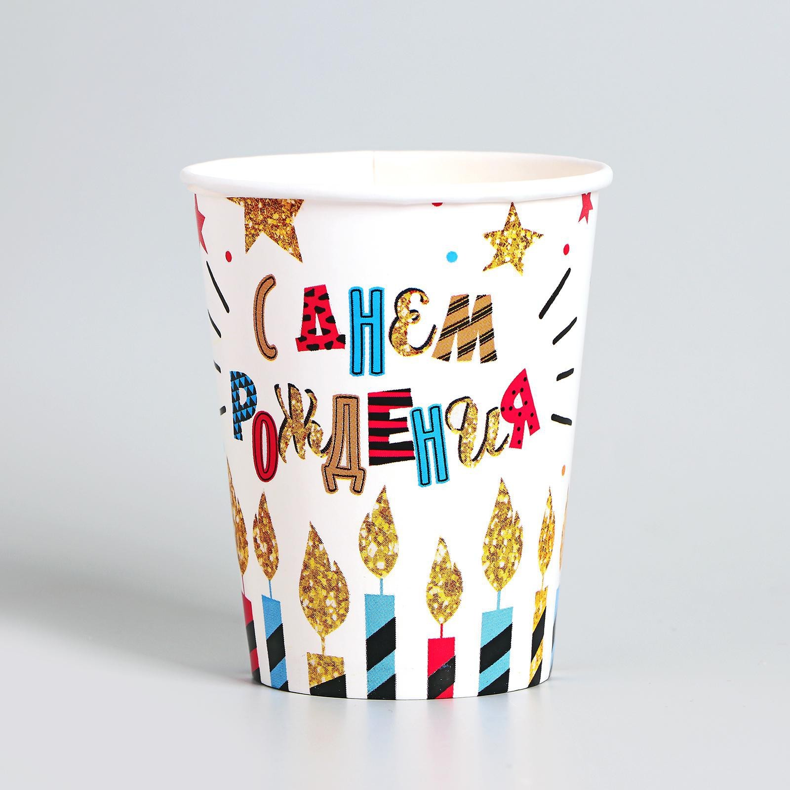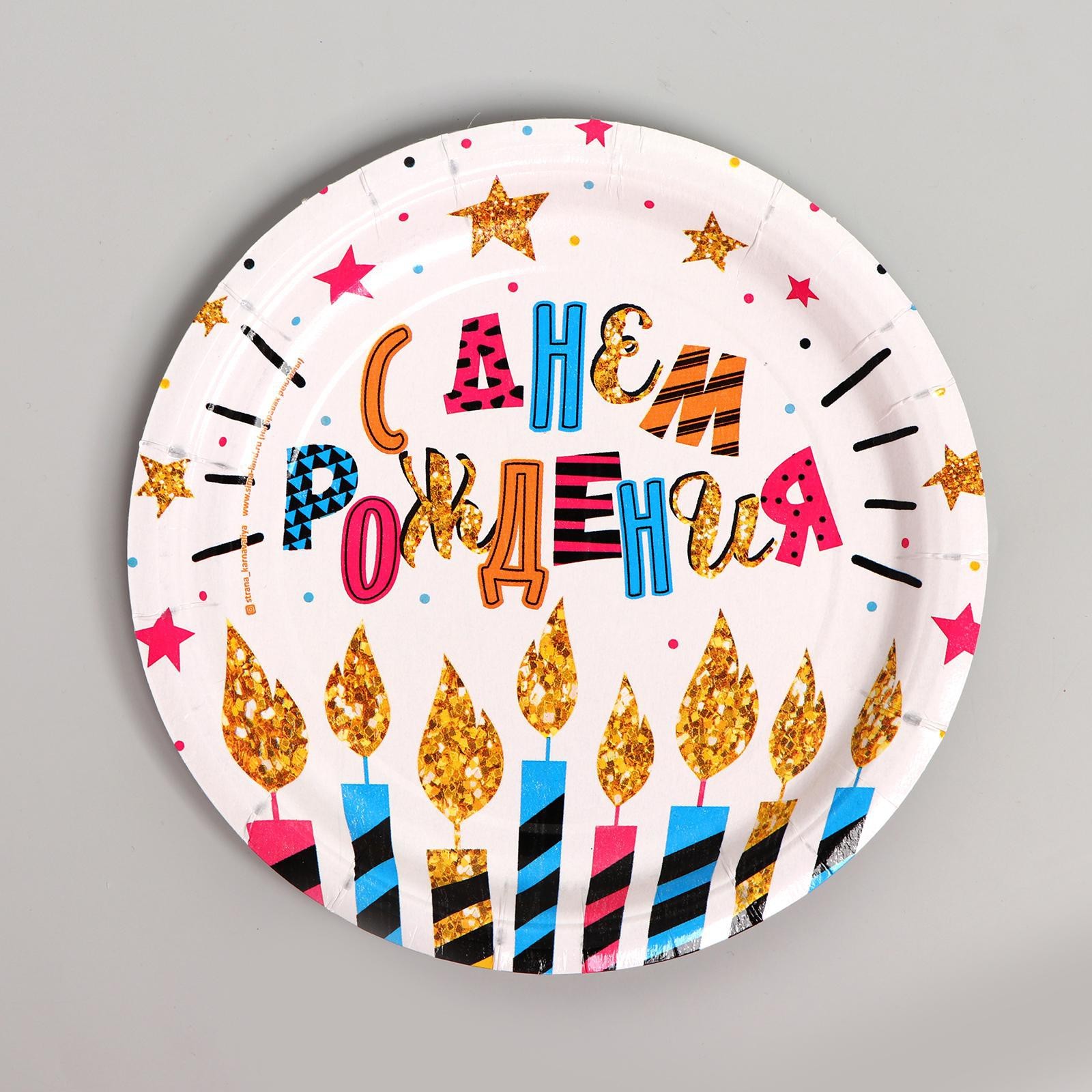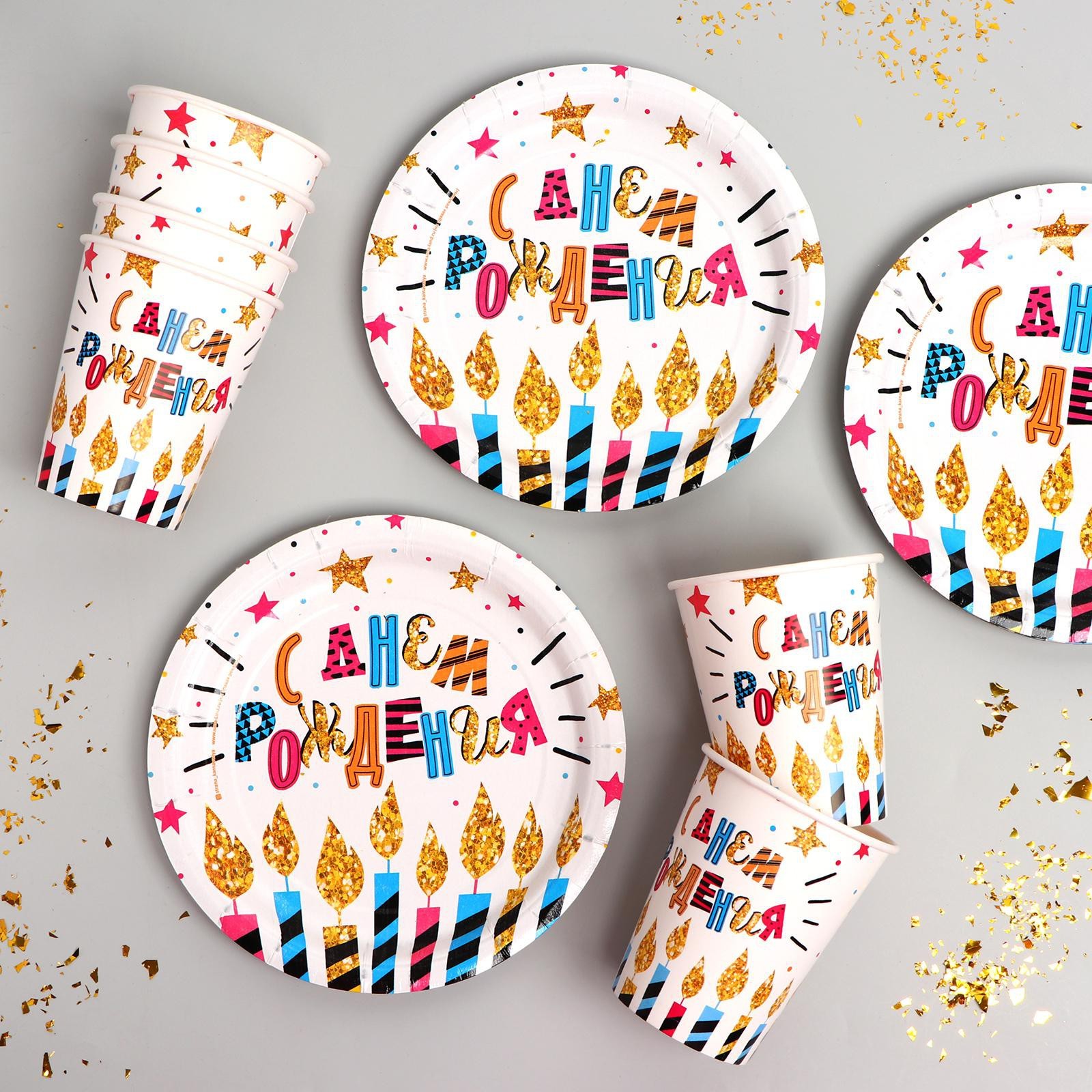 Набор бумажной посуды одноразовый с днём рождения», свечи и звёзды