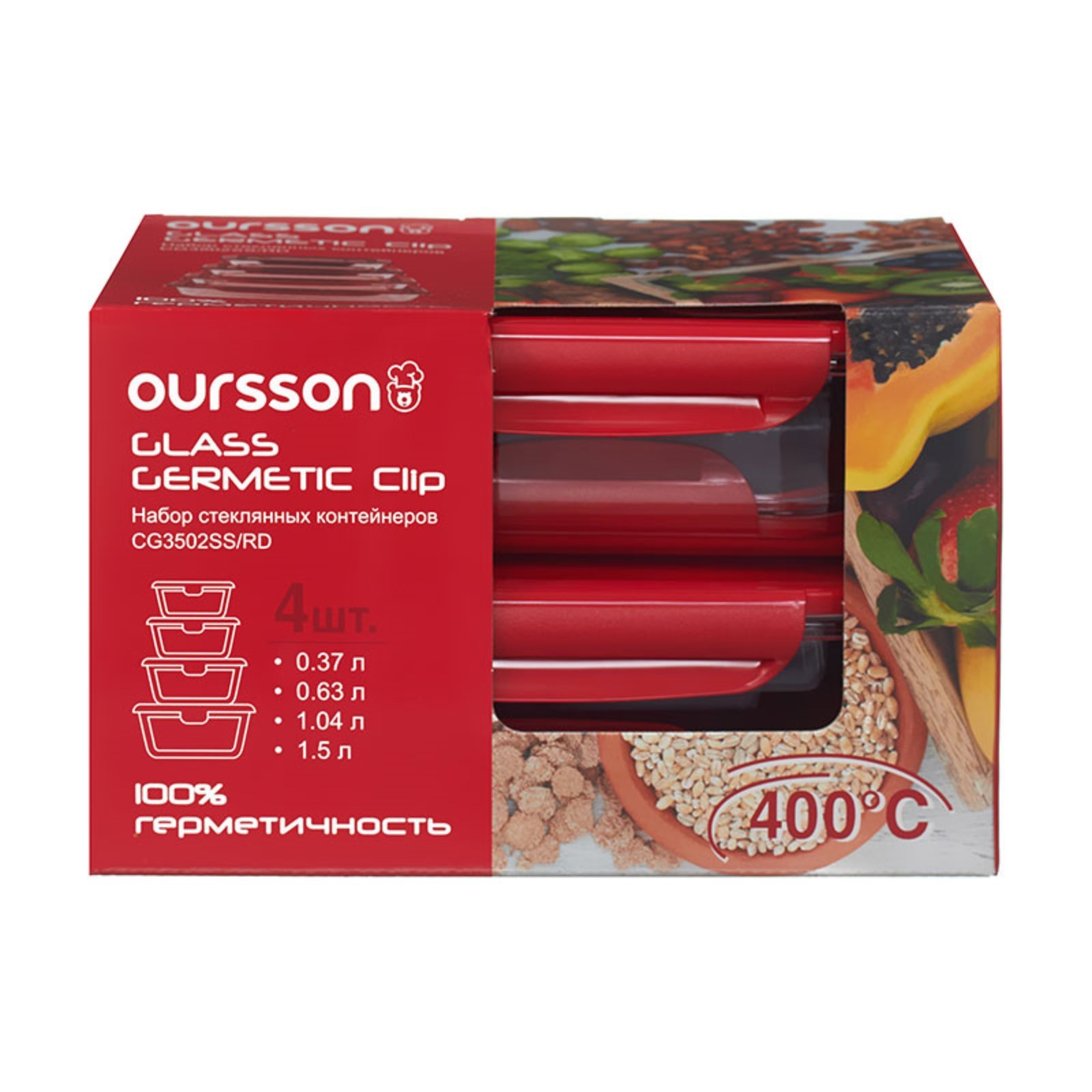 Набор стеклянных контейнеров oursson 0.37/ 0.63/ 1/ 1.5 л, 4 шт. Цвет: Красный Форма: Прямоугольная Объём, л: 1.5 В наборе, шт.: 4 Объём, мл: 370 Объём, мл: 630 Объём, мл: 1040 Объём, мл: 1500 Материал крышки: Пластик Материал: Боросиликатное стекло Герметичная крышка: Да Можно мыть в посудомоечной машине: Да Можно использовать в СВЧ-печи: Да Назначение: Универсальная Серия: Glass Germetic Clip Серия: Oursson Glass Germetic Clip Запрет реализации по сегментам: 00000000485 Форма: Прямоугольник  развернуть описание ▼