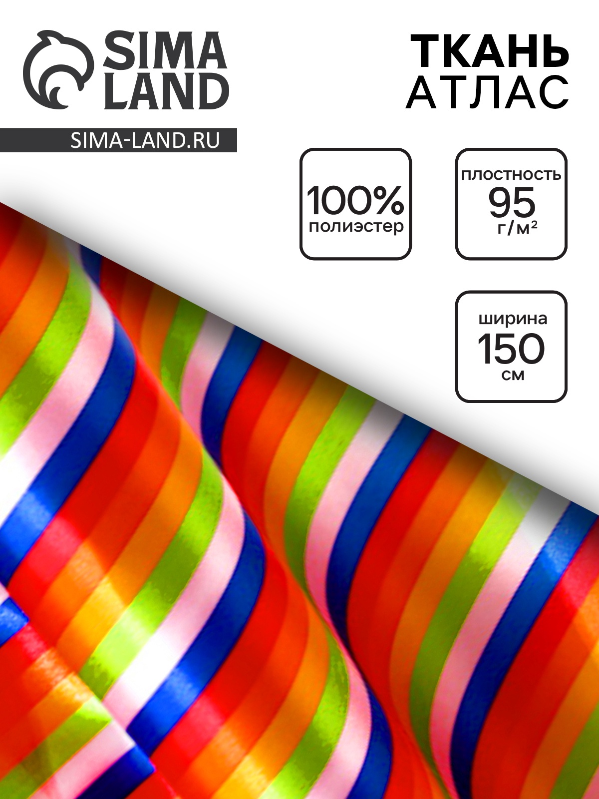 Ткань атлас для рукоделия и шитья, полосы горизонтальные, ширина 150 см