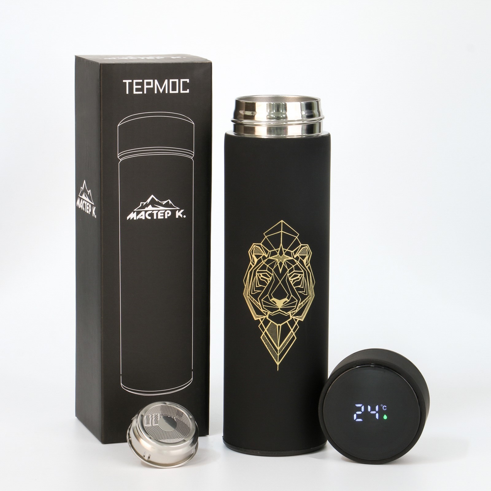 Термос, 500 мл, Basic "тигр", с ситечком, с датчиком температуры, сохраняет тепло 10 ч