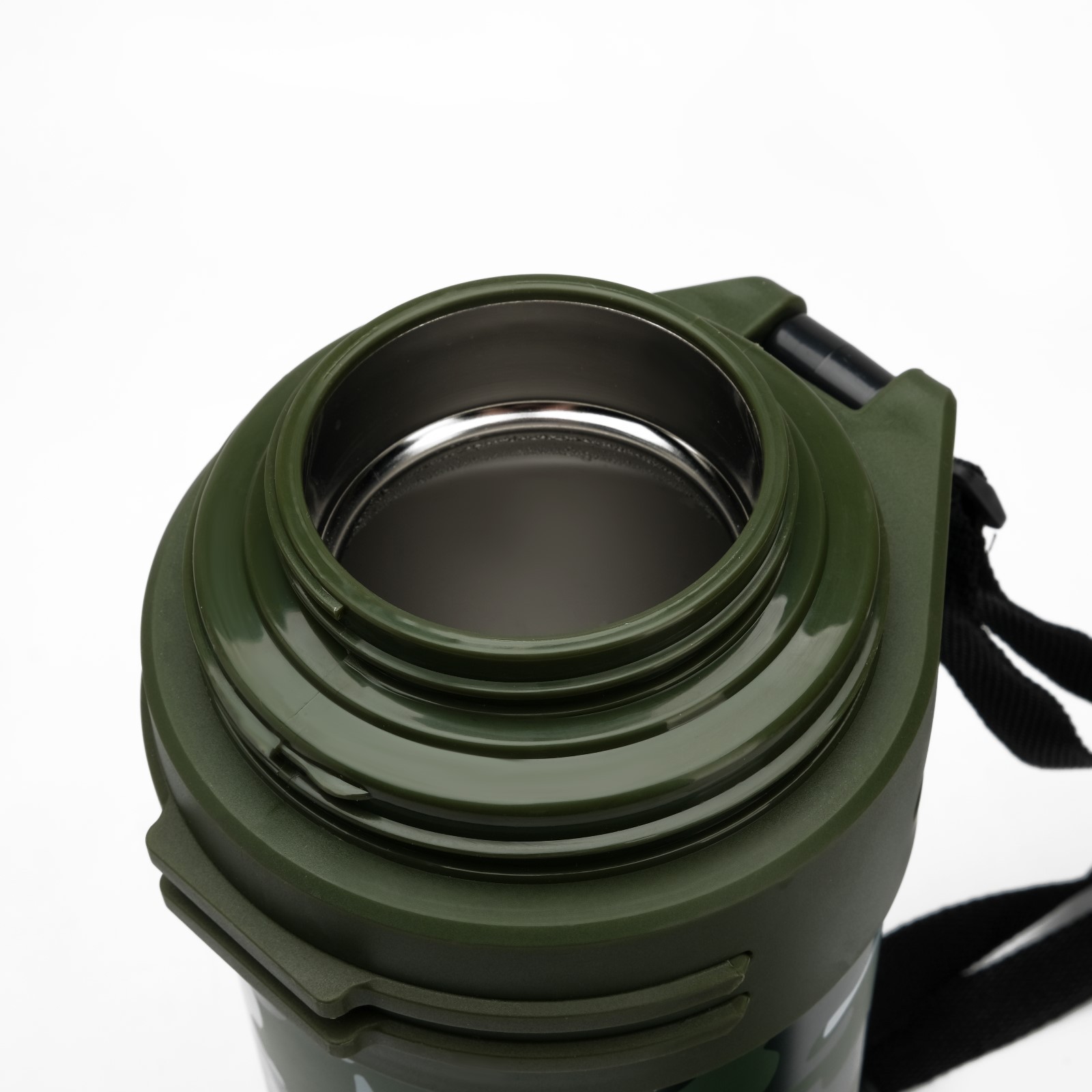 Термос, 2 л, тропа "камуфляж", с двумя кружками, с ремешком, сохраняет тепло 24 ч, 13.5х36см