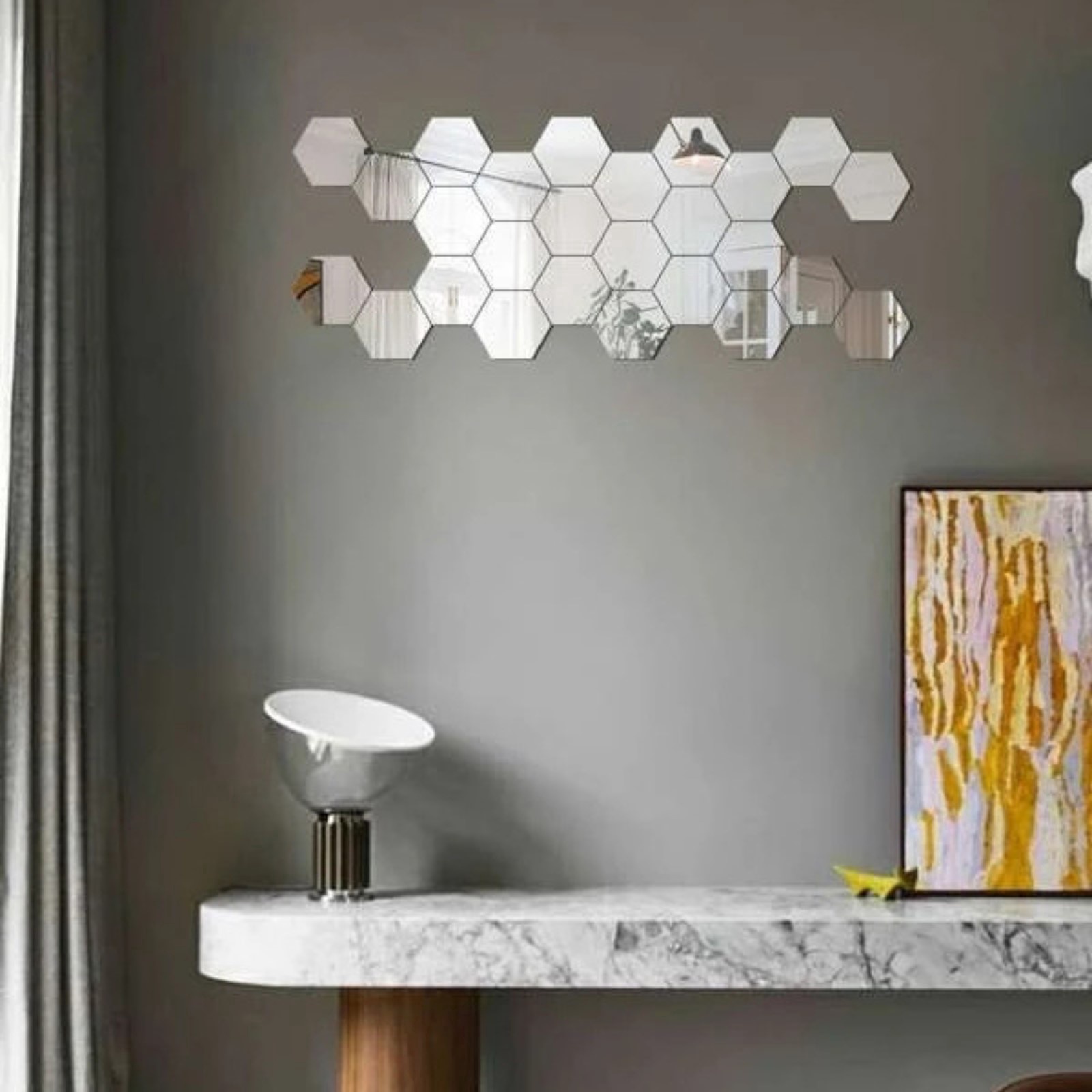 Набор наклеек интерьерных take it easy «соты», 21 шт., зеркальные, декор настенный, 8 7 см. Наклейки изготовлены из высококачественного акрила. Это долговечный, безопасный, влагостойкий и неприхотливый в уходе материал. Наклейки подходят для декора интерьера дома, офиса, магазина. Их используют, чтобы освежить или дополнить интерьер, скрыть дефекты или в качестве безопасной и оригинальной альтернативы зеркалу. Изделие легко крепится на любой гладкой поверхности. Например на обоях, стекле, керамической плитке, металле, пластике. Наклейки легко снимаются и не оставляют следов, поэтому их можно использовать в съёмной квартире. Нанесение на поверхность Наклейка состоит их трёх слоев — виниловой основы с клеевым слоем, защитной подложки снизу и прозрачной плёнки сверху. Не снимайте защитную плёнку с глянцевой части изделия, пока не закончите работы.Подготовьте поверхность, на которую будете крепить наклейку. Выровняйте, очистите от пыли, при необходимости обезжирьте спиртовым раствором или специальной жидкостью.Приложите наклейку к стене, наметьте место, куда вы хотите её приклеить. При необходимости закрепите её малярным скотчем, чтобы посмотреть издалека, как она будет выглядеть.Чтобы наклеить маленькие стикеры, полностью отделите нижнюю подложку, аккуратно приложите наклейку к поверхности и прижмите, разглаживая ракелем или мягкой тряпочкой от центра к краям.Большую наклейку приложите подложкой к стене и аккуратно отделите небольшую её часть. Приклейте этот край, прижмите и аккуратно вытягивайте подложку, одновременно прижимая освободившиеся части наклейки. Разглаживайте изделие от центра к краям.Если нужно состыковать элементы наклейки, начинайте с самого крупного. Например, если наклейка в виде дерева — приклейте сначала ствол, а потом ветви.Когда работы с наклейкой закончены, аккуратно удалите защитную плёнку. Стягивайте её так же, как удаляли подложку, оттягивая вниз или в сторону.Цвет:Серебристый|Форма:Шестиугольная|Размер, см:8 х 7|Тематика:Геометрия|Тематика праздника:Универсальная тематика|Материал:Акрил|Вид наклейки:Зеркальная|Вид наклейки:Интерьерная|Материал зеркала:Акрил|Страна:Китай  развернуть описание ▼
