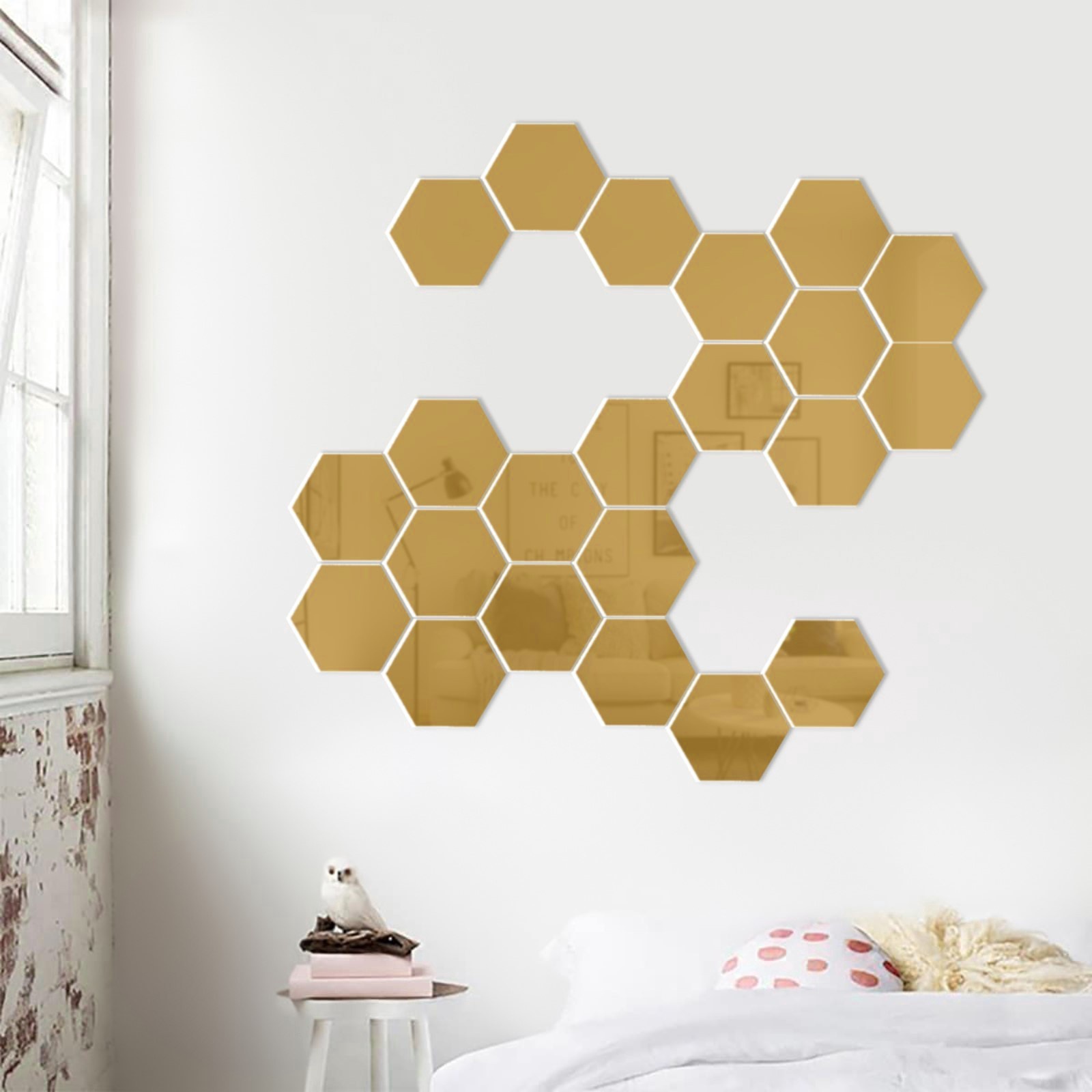 Набор наклеек интерьерных take it easy «соты», 21 шт., зеркальные, декор настенный, 8 7 см. Наклейки изготовлены из высококачественного акрила. Это долговечный, безопасный, влагостойкий и неприхотливый в уходе материал. Наклейки подходят для декора интерьера дома, офиса, магазина. Их используют, чтобы освежить или дополнить интерьер, скрыть дефекты или в качестве безопасной и оригинальной альтернативы зеркалу. Изделие легко крепится на любой гладкой поверхности. Например на обоях, стекле, керамической плитке, металле, пластике. Наклейки легко снимаются и не оставляют следов, поэтому их можно использовать в съёмной квартире. Нанесение на поверхность Наклейка состоит их трёх слоев — виниловой основы с клеевым слоем, защитной подложки снизу и прозрачной плёнки сверху. Не снимайте защитную плёнку с глянцевой части изделия, пока не закончите работы.Подготовьте поверхность, на которую будете крепить наклейку. Выровняйте, очистите от пыли, при необходимости обезжирьте спиртовым раствором или специальной жидкостью.Приложите наклейку к стене, наметьте место, куда вы хотите её приклеить. При необходимости закрепите её малярным скотчем, чтобы посмотреть издалека, как она будет выглядеть.Чтобы наклеить маленькие стикеры, полностью отделите нижнюю подложку, аккуратно приложите наклейку к поверхности и прижмите, разглаживая ракелем или мягкой тряпочкой от центра к краям.Большую наклейку приложите подложкой к стене и аккуратно отделите небольшую её часть. Приклейте этот край, прижмите и аккуратно вытягивайте подложку, одновременно прижимая освободившиеся части наклейки. Разглаживайте изделие от центра к краям.Если нужно состыковать элементы наклейки, начинайте с самого крупного. Например, если наклейка в виде дерева — приклейте сначала ствол, а потом ветви.Когда работы с наклейкой закончены, аккуратно удалите защитную плёнку. Стягивайте её так же, как удаляли подложку, оттягивая вниз или в сторону.Цвет:Золотистый|Форма:Шестиугольная|Размер, см:8 х 7|Тематика:Геометрия|Тематика праздника:Универсальная тематика|Материал:Акрил|Вид наклейки:Зеркальная|Вид наклейки:Интерьерная|Материал зеркала:Акрил|Страна:Китай  развернуть описание ▼