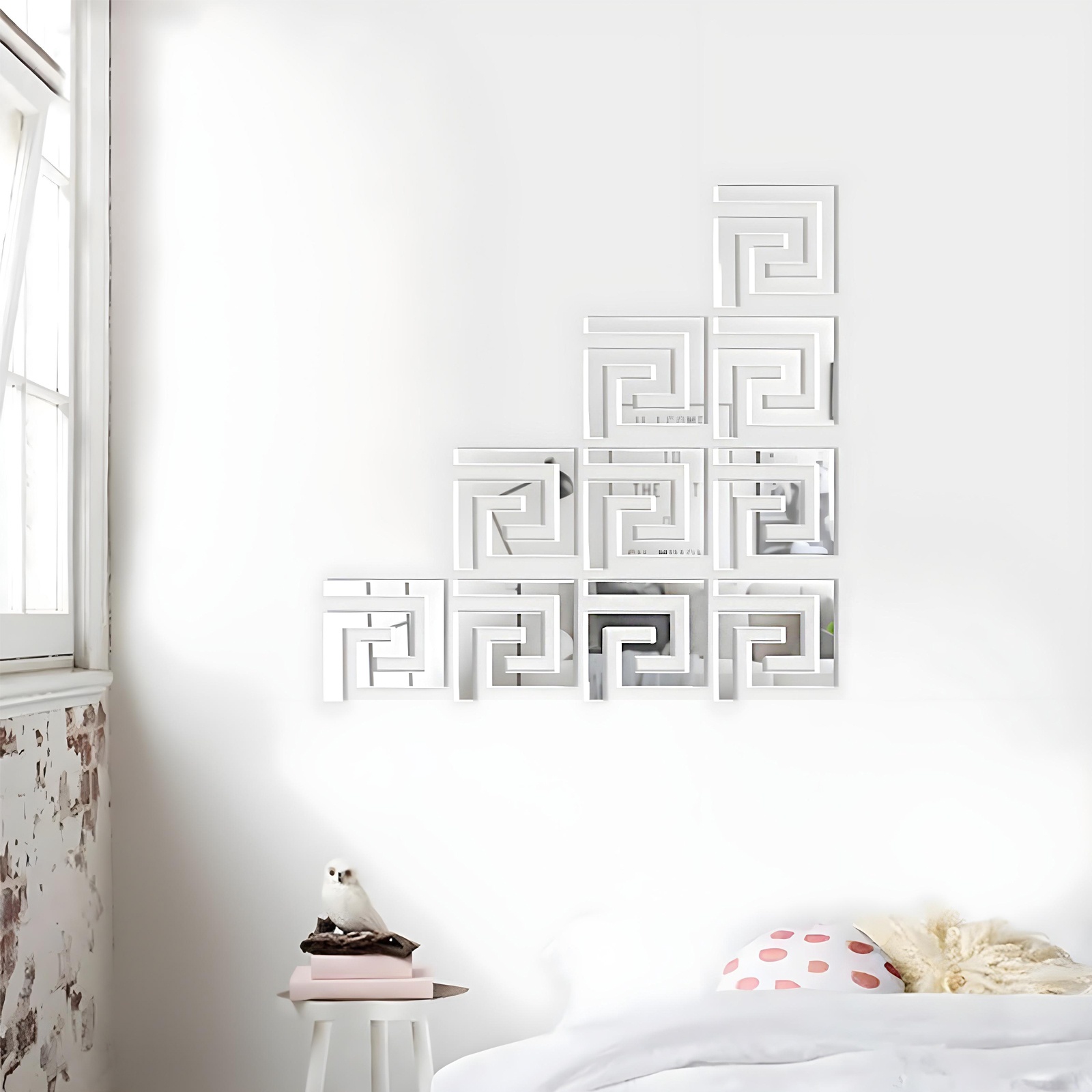 Набор наклеек интерьерных take it easy «лабиринт», 24 шт., зеркальные, декор настенный, 5 5 см. Настенные наклейки изготовлены из высококачественного акрила. Это долговечный, безопасный, влагостойкий и неприхотливый в уходе материал. Наклейки подходят для декора интерьера дома, офиса, магазина. Их используют, чтобы освежить или дополнить интерьер, скрыть дефекты на стене, в качестве безопасной и оригинальной альтернативы зеркалу. Изделие легко крепится на любой чистой сухой гладкой поверхности. Например, на окрашенной или оклеенной обоями стене, стекле, керамической плитке, металле, пластике. Возможна также укладка на потолок. Нанесение на поверхность Подготовьте поверхность, на которую будете крепить наклейку. Выровняйте, очистите от пыли, при необходимости обезжирьте спиртовым раствором или специальной жидкостью.Приложите наклейку к стене, наметьте место, куда вы хотите её приклеить. При необходимости закрепите её малярным скотчем, чтобы посмотреть издалека, как она будет выглядеть.Отделите нижнюю подложку, аккуратно приложите наклейку к поверхности и прижмите, разглаживая от центра к краям.Если нужно состыковать элементы наклейки, начинайте с самого крупного. Например, если наклейка в виде дерева — приклейте сначала ствол, а потом ветви.Когда работы с наклейкой закончены, аккуратно удалите защитную плёнку. Стягивайте её так же, как удаляли подложку, оттягивая вниз или в сторону.Цвет:Серебристый|Форма:Квадратная|Размер, см:5 х 5|Тематика:Геометрия|Тематика праздника:Универсальная тематика|Материал:Акрил|Вид наклейки:Интерьерная|Вид наклейки:Зеркальная|Материал зеркала:Акрил|Страна:Китай  развернуть описание ▼