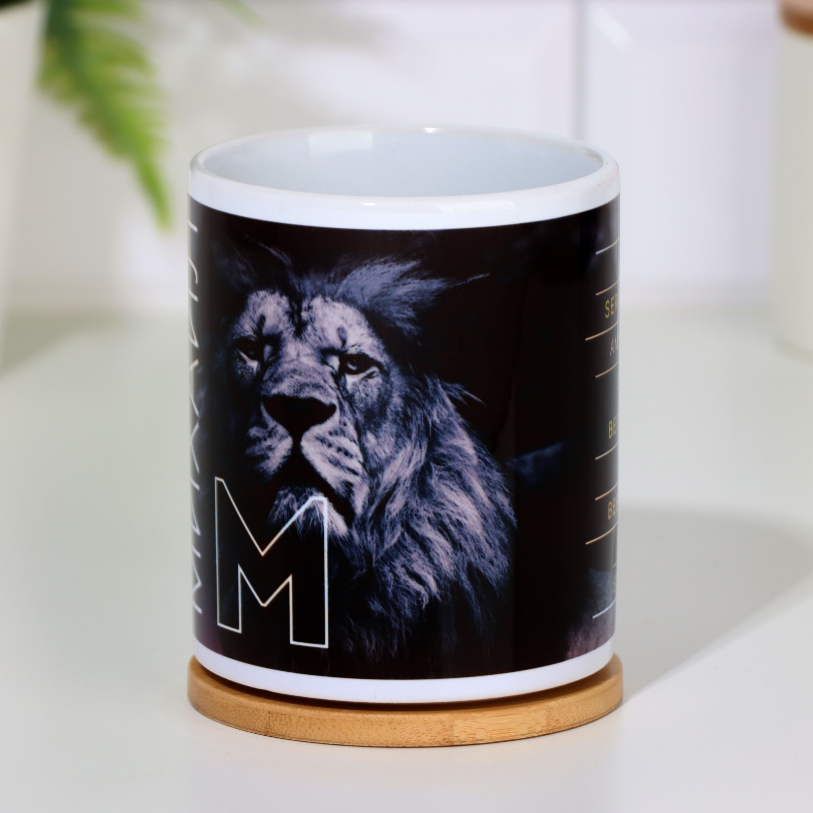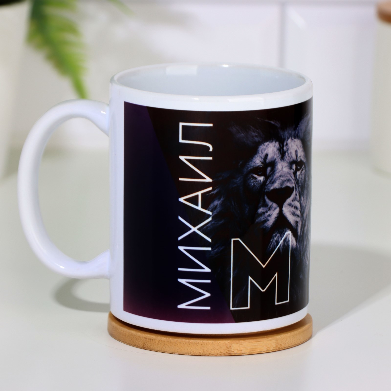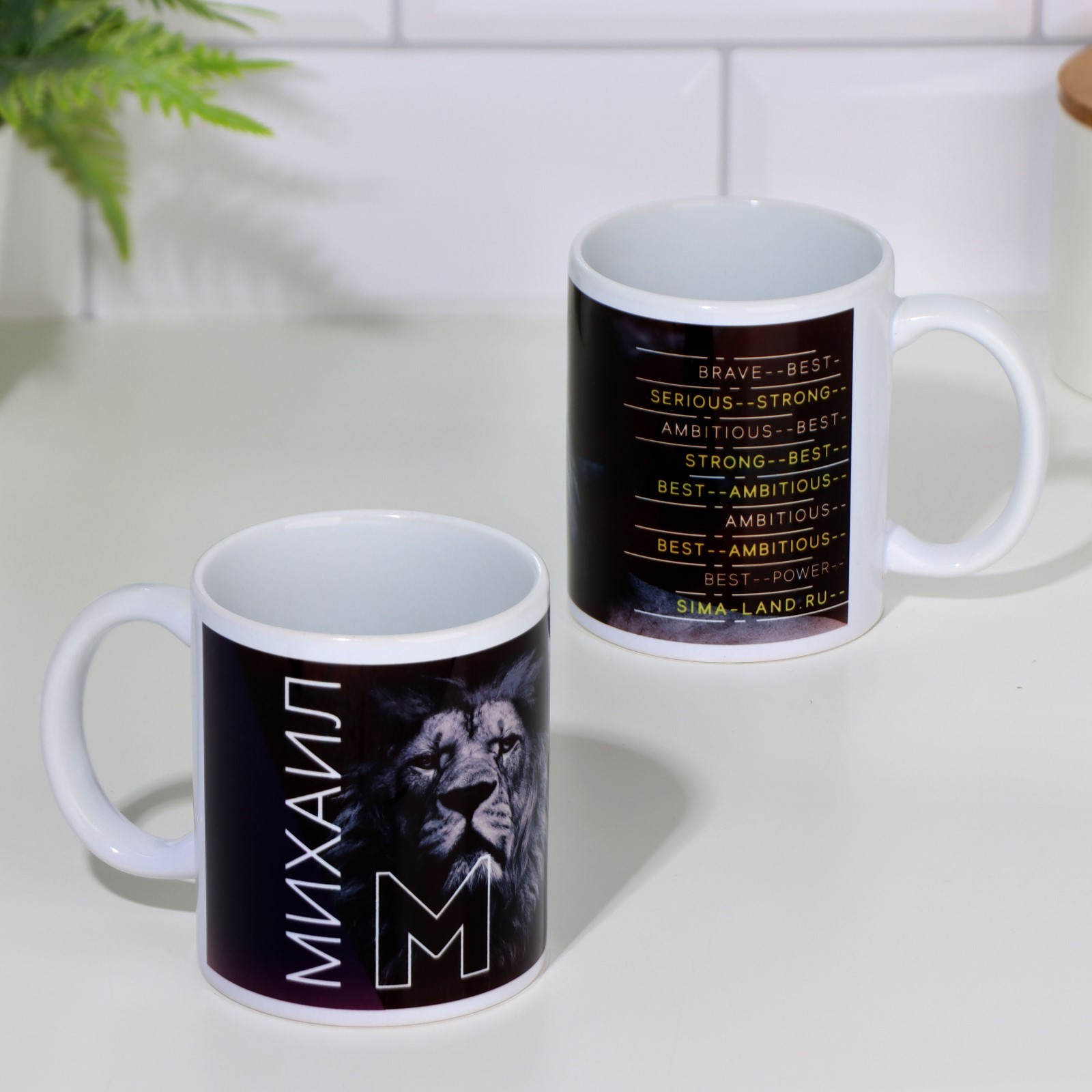 Кружка сублимация "михаил" лев, синяя, 320 мл, с нанесением