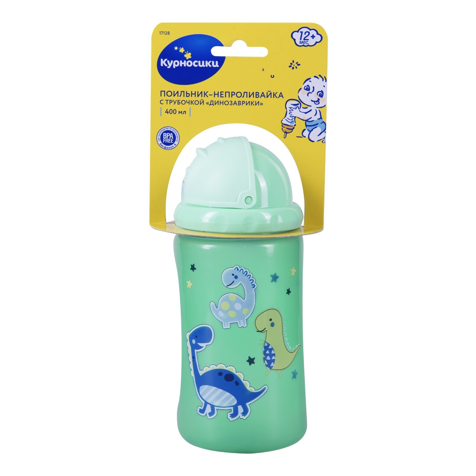 Поильник-непроливайка с трубочкой «динозаврики», 400 мл