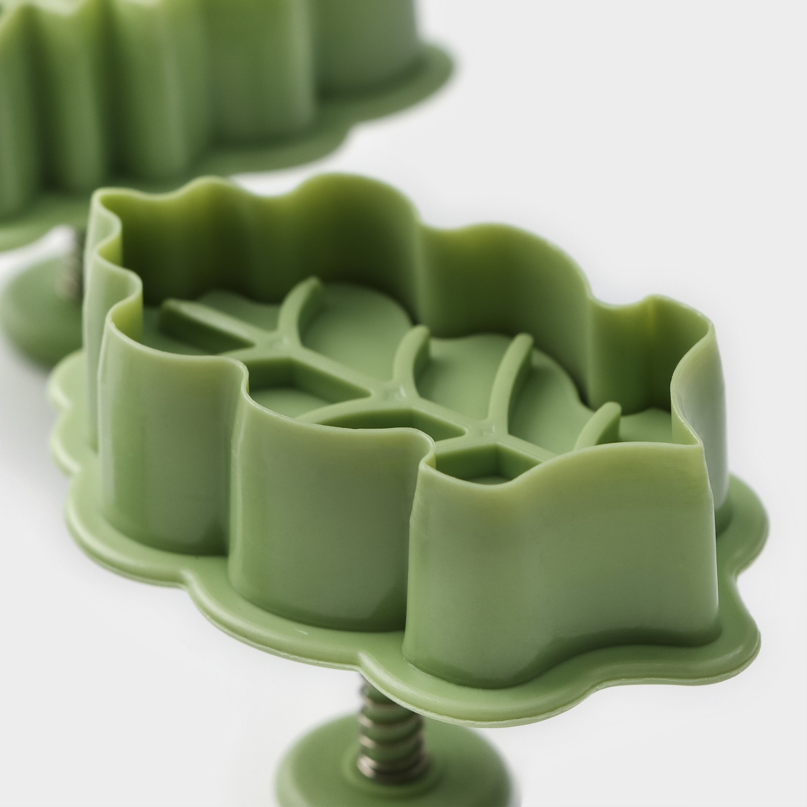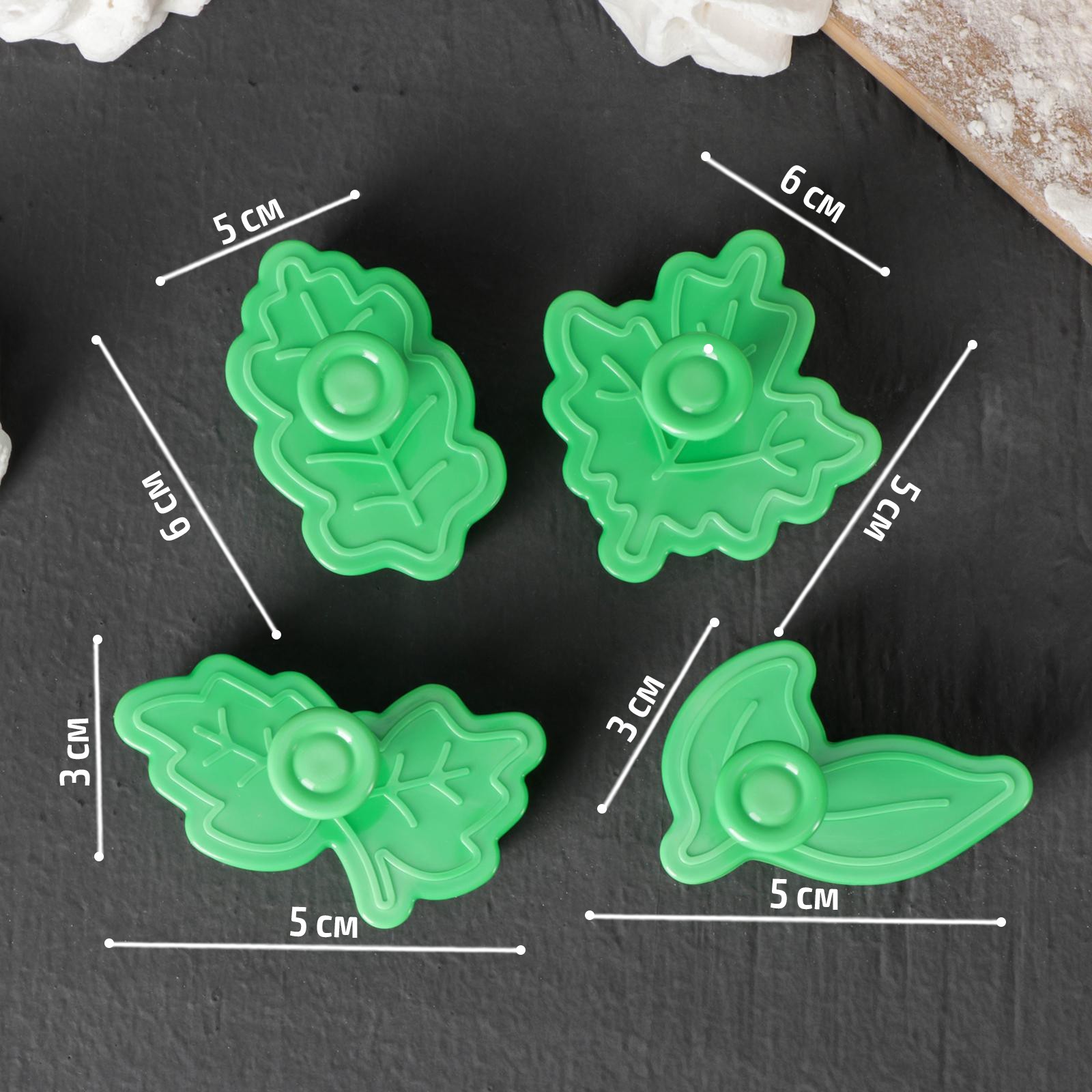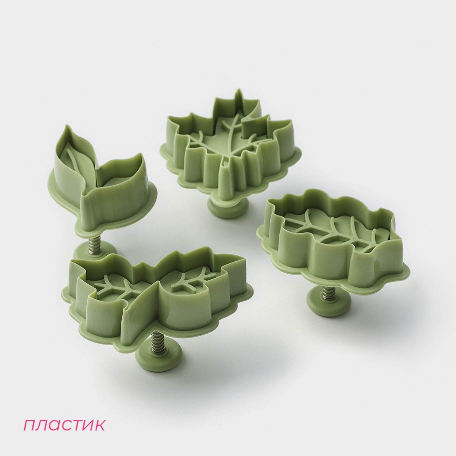 Набор плунжеров кондитерских доляна «листва», 4 шт, цвет зелёный. Кондитерские плунжеры «Листва» нужны для изготовления украшений из пищевой мастики. Как ими пользоваться? Разомните мастику до эластичного состояния. Максимально тонко раскатайте мастику. Надавив на плунжер, сделайте вырубку мастики нужной формы. Пока мастика находится в резце, проведите пальцем по основанию плунжера и удалите излишки. Надавите на плунжер, чтобы из него выпала заготовка. Чтобы мастика не прилипала к плунжеру, смазывайте его поверхность растительным жиром или используйте крахмал. Фантазируйте и создавайте новое! Цвет: Зелёный Форма: Фигурная В наборе, шт.: 4 Материал: Пластик Тип покрытия: Без покрытия Форма: Растения и цветы  развернуть описание ▼