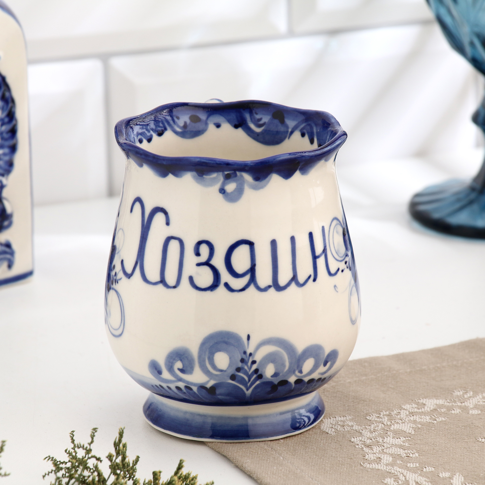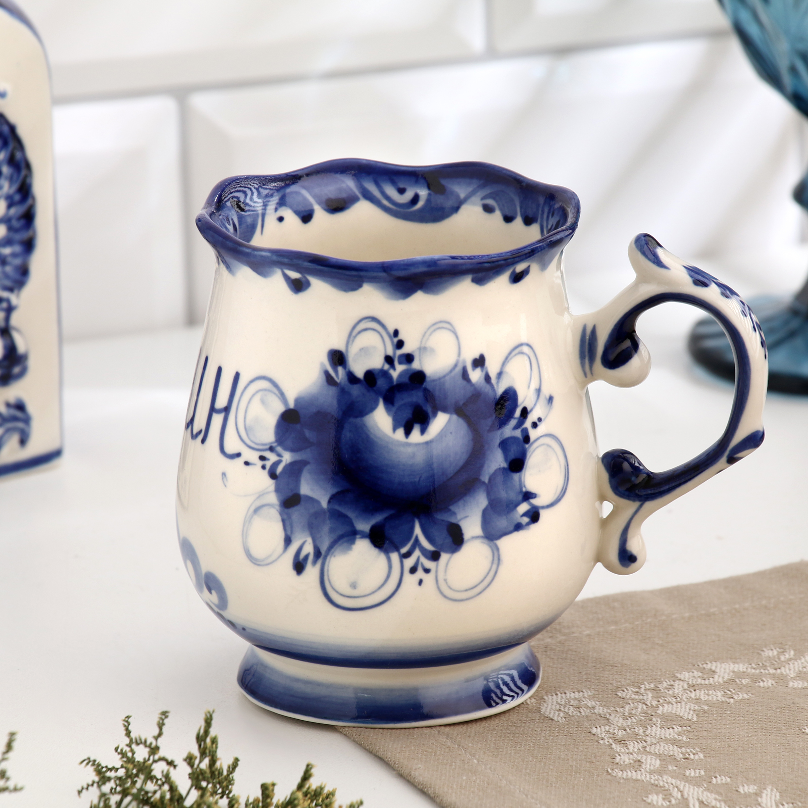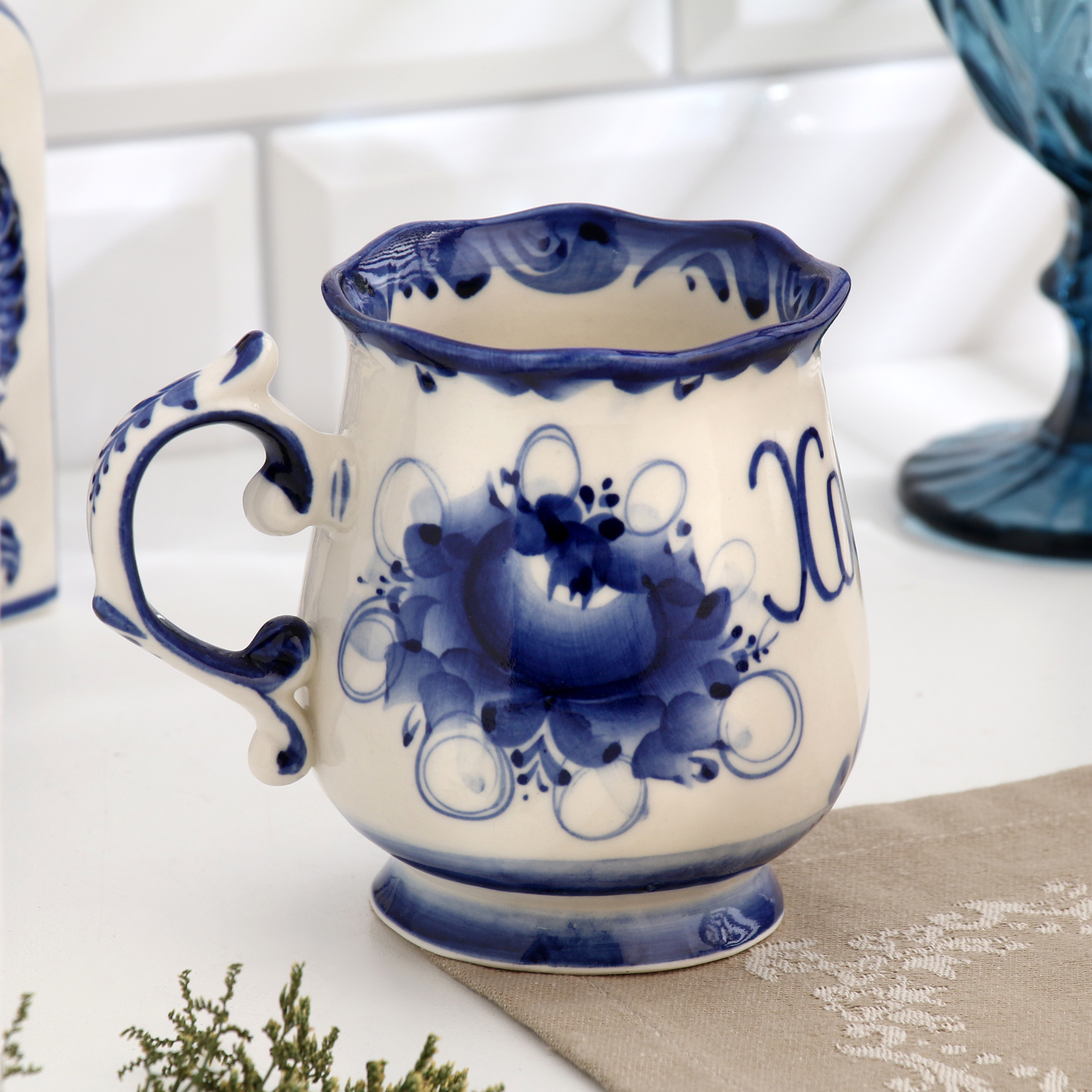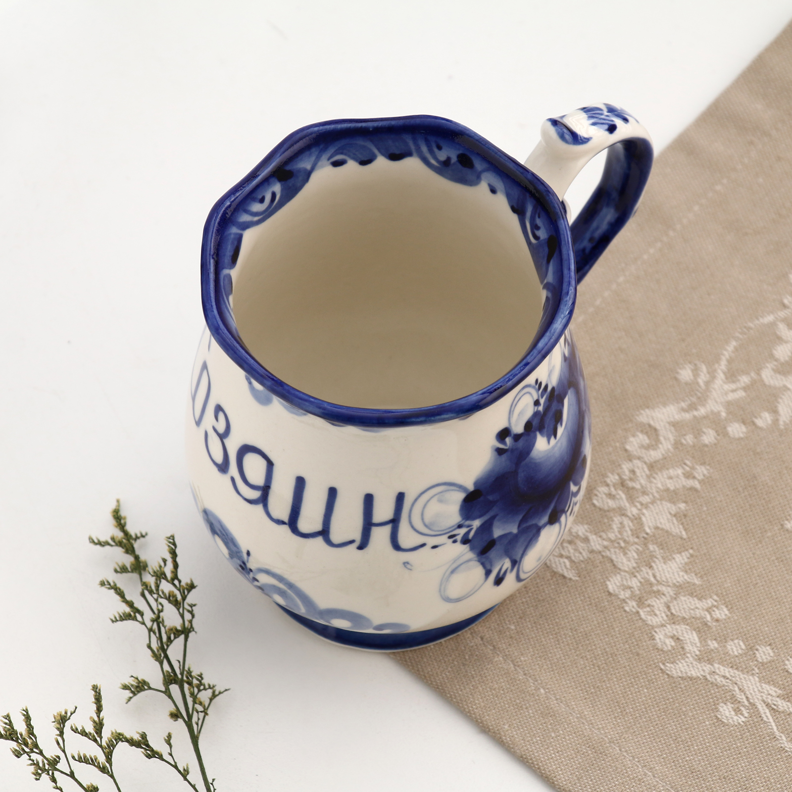 Кружка "утро хозяин", 0,3 л, 11х12 см, гжель, фарфор