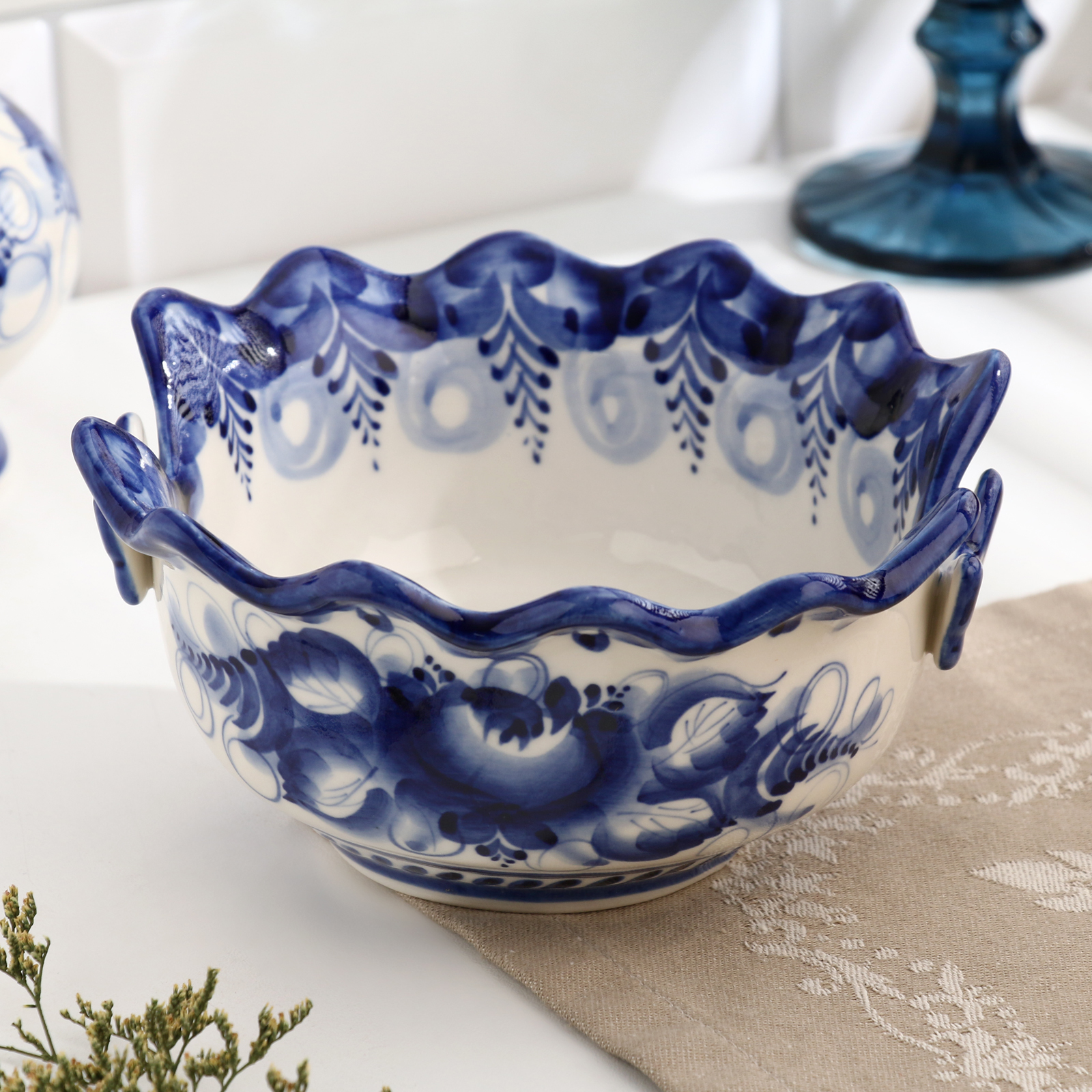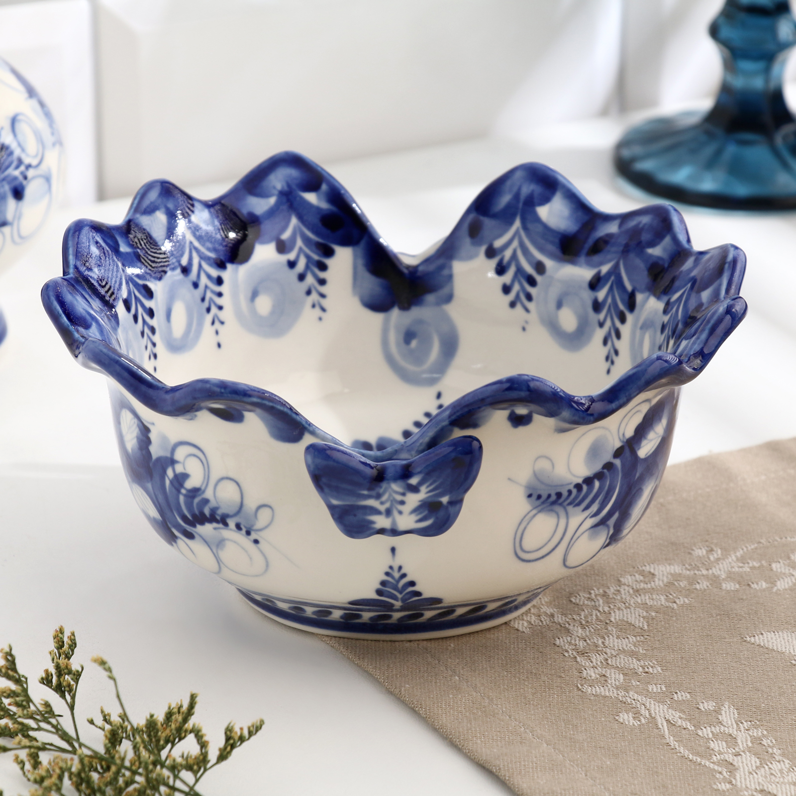 Салатник "бабочка", 0,5 л, 8х16 см, гжель, фарфор