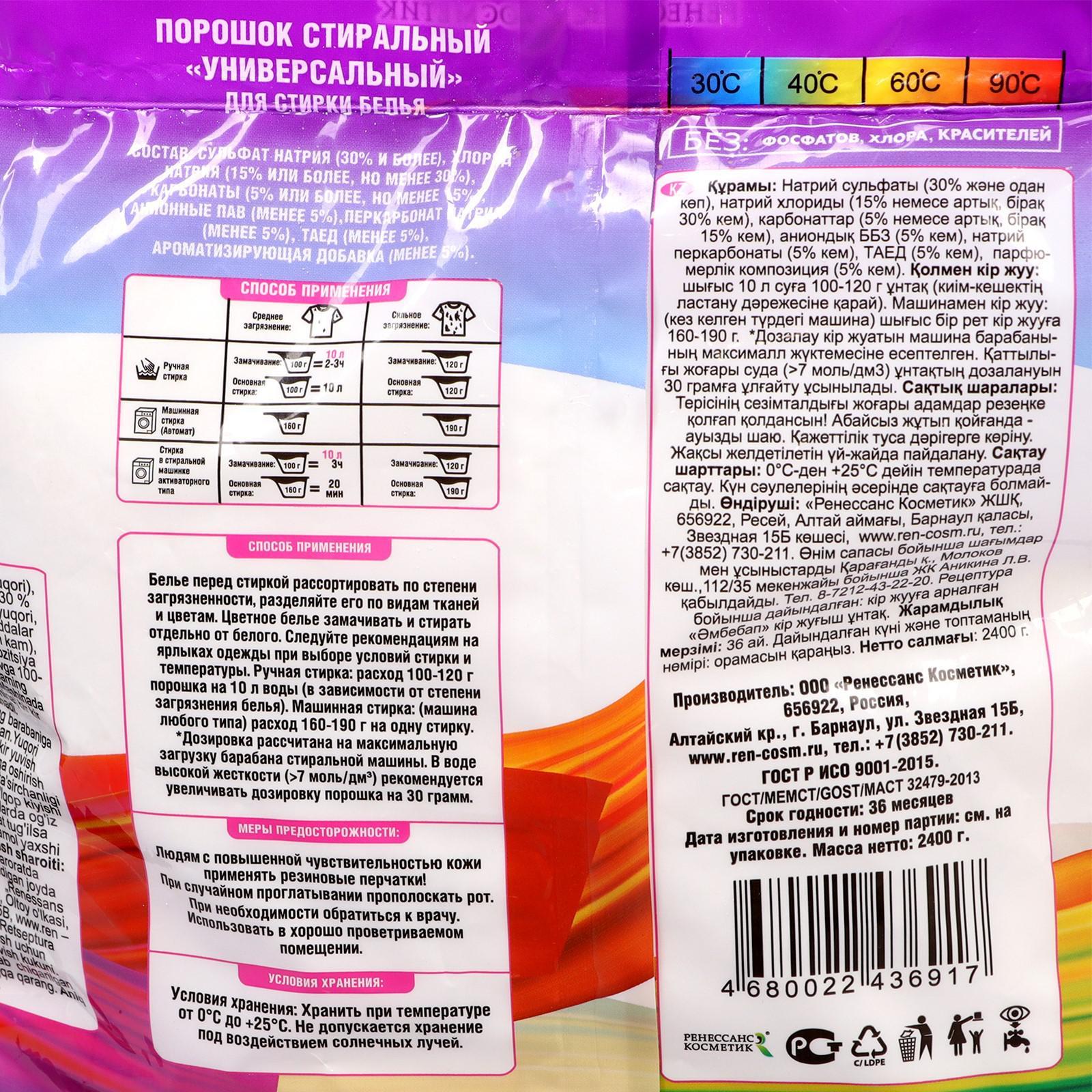 Стиральный порошок "выгодная стирка" Color, универсальный, 2.4 кг