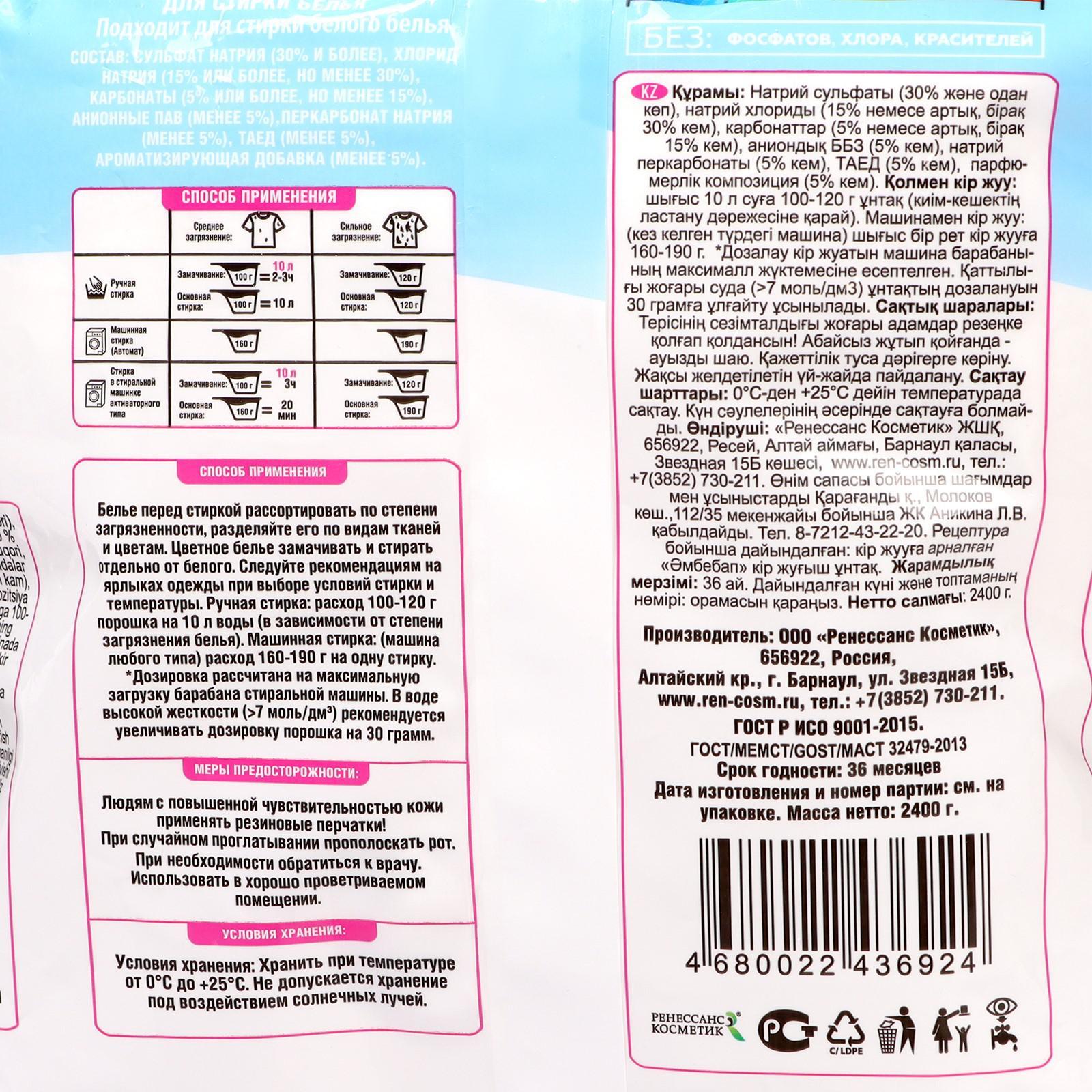 Стиральный порошок "выгодная стирка - свежесть", универсальный, 2.4 кг
